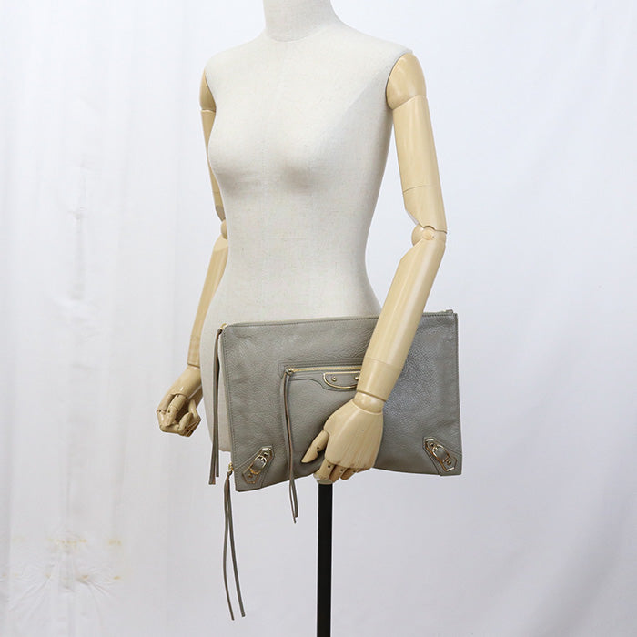 BALENCIAGA 390186 Clutch bag metal edge L-shaped clutch bag leather.Goatskin gray mens Used Authentic