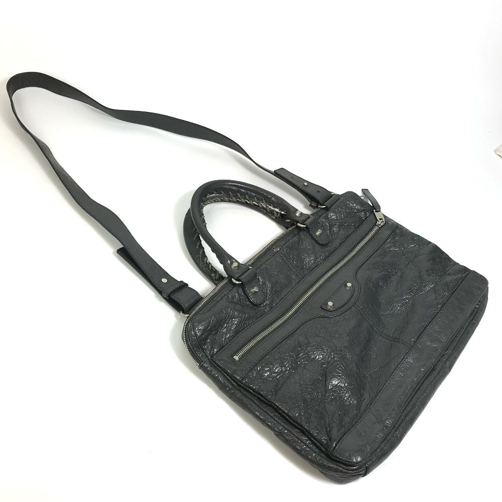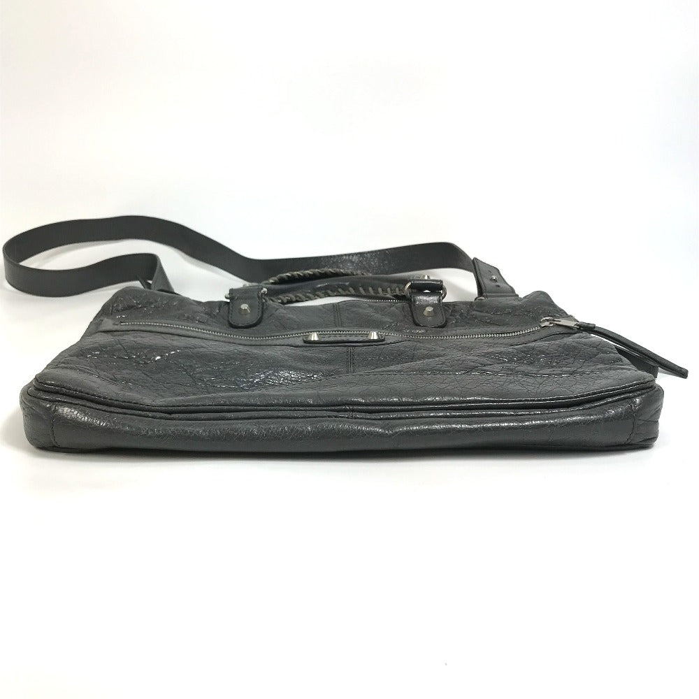BALENCIAGA Business bag 310939 leather gray Wrinkles processing Shoulder Bag Crossbody mens Used Authentic