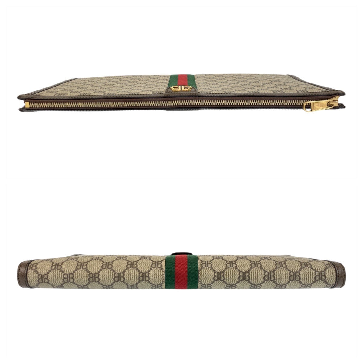 BALENCIAGA Clutch bag 680381 GG Supreme canvas, leather Beige Brown Gold Metal Clutch bag business bag document case GUCCI collaboration The Hacker Project mens Used Authentic