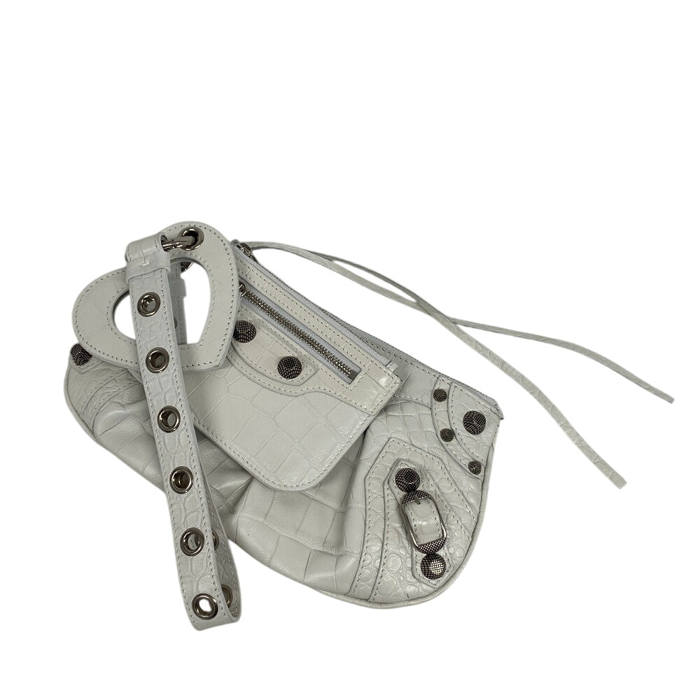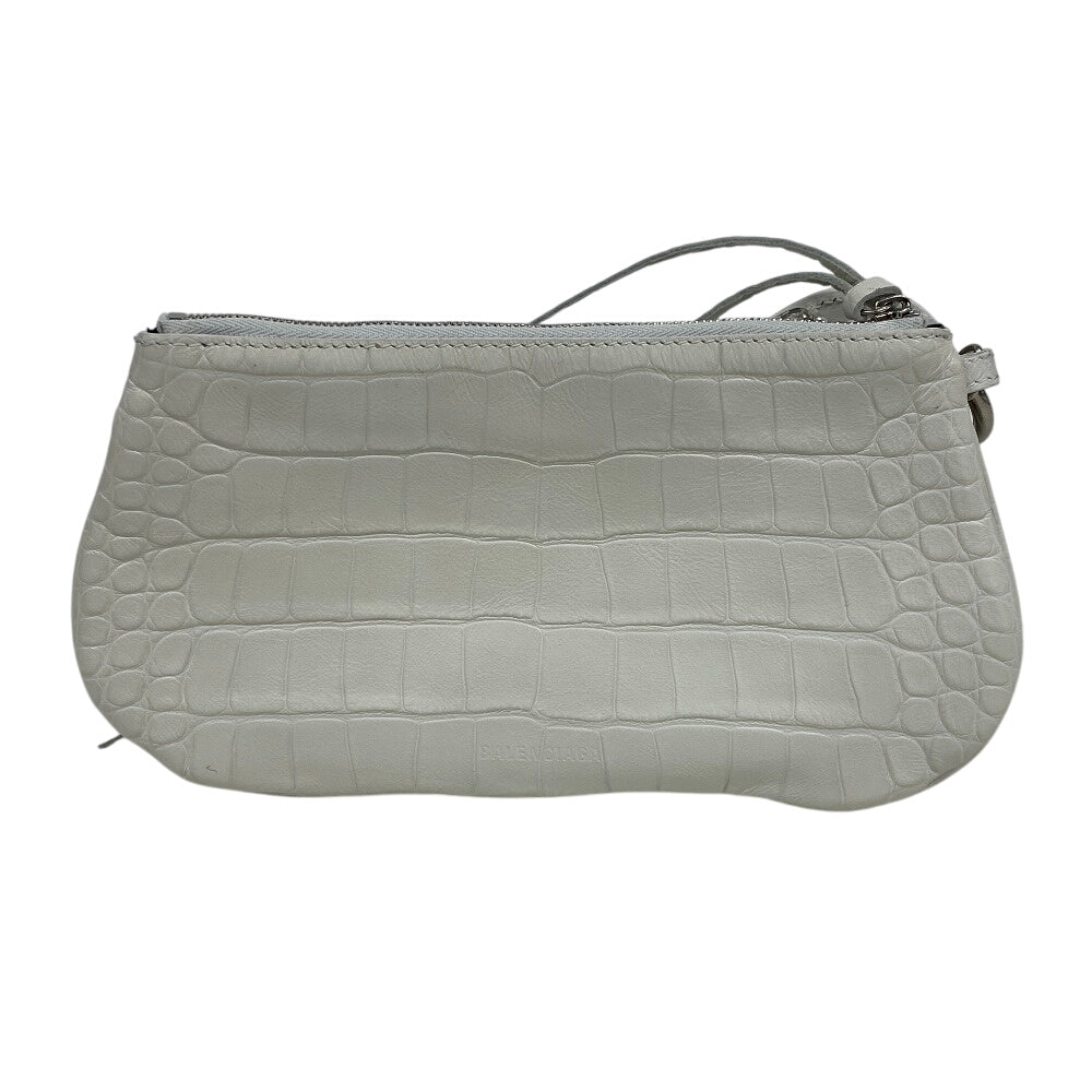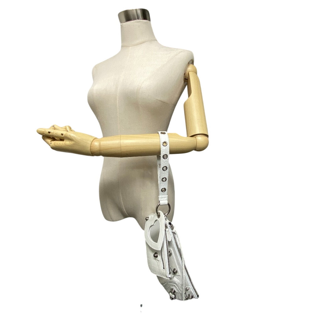 BALENCIAGA Clutch bag 694027 leather white Croco embossed luka goal Women Used Authentic
