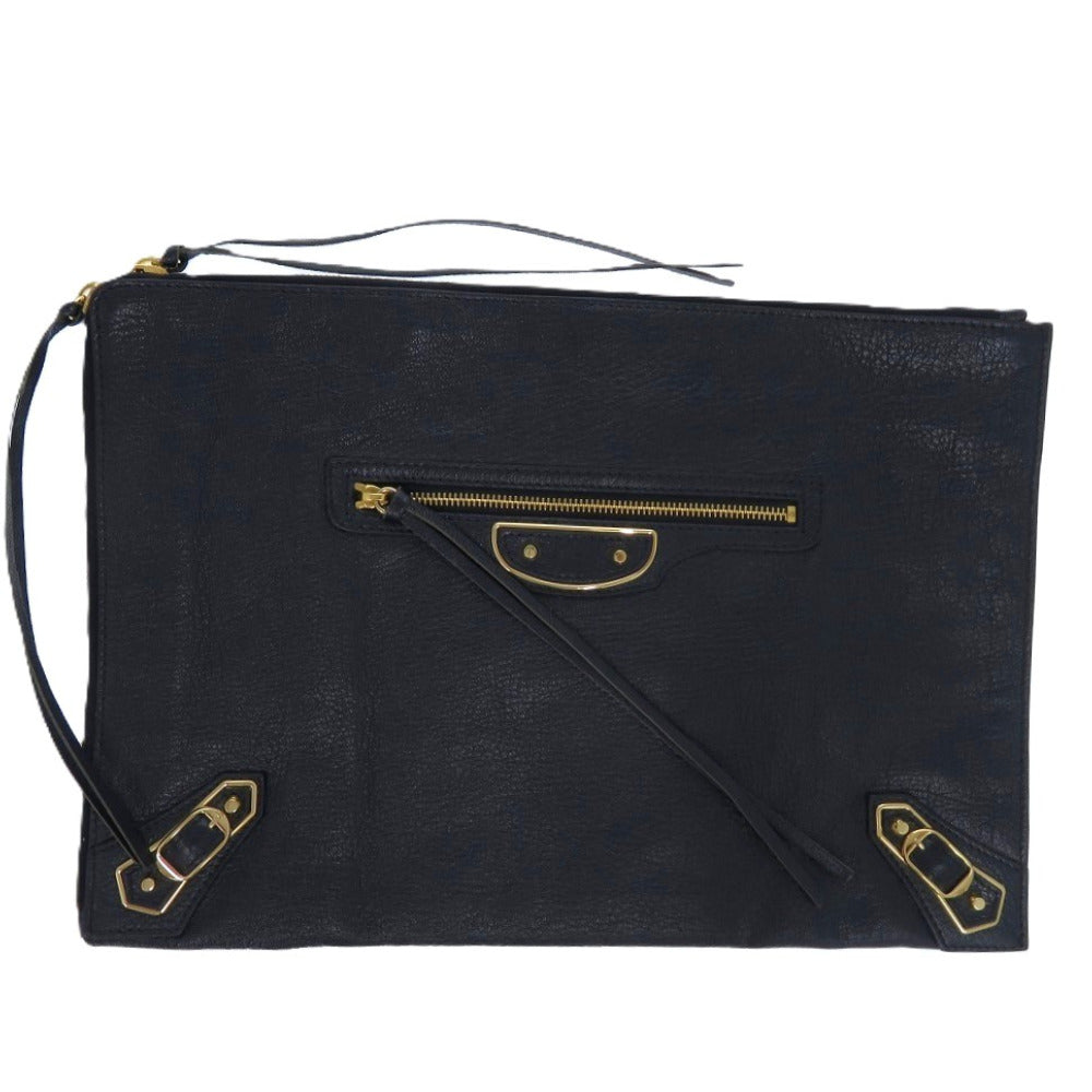 BALENCIAGA Clutch bag Leather, Goatskin Navy Metal Edge Goatskin