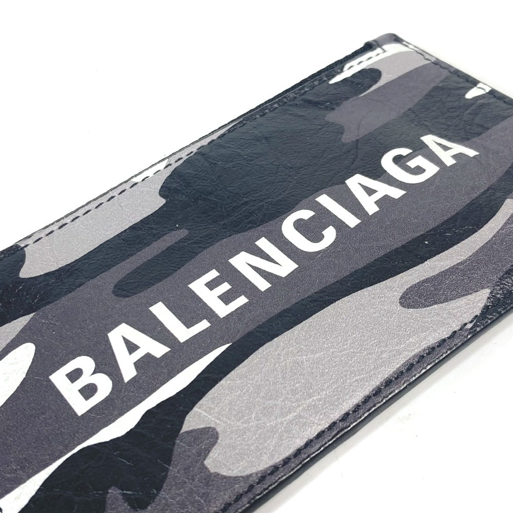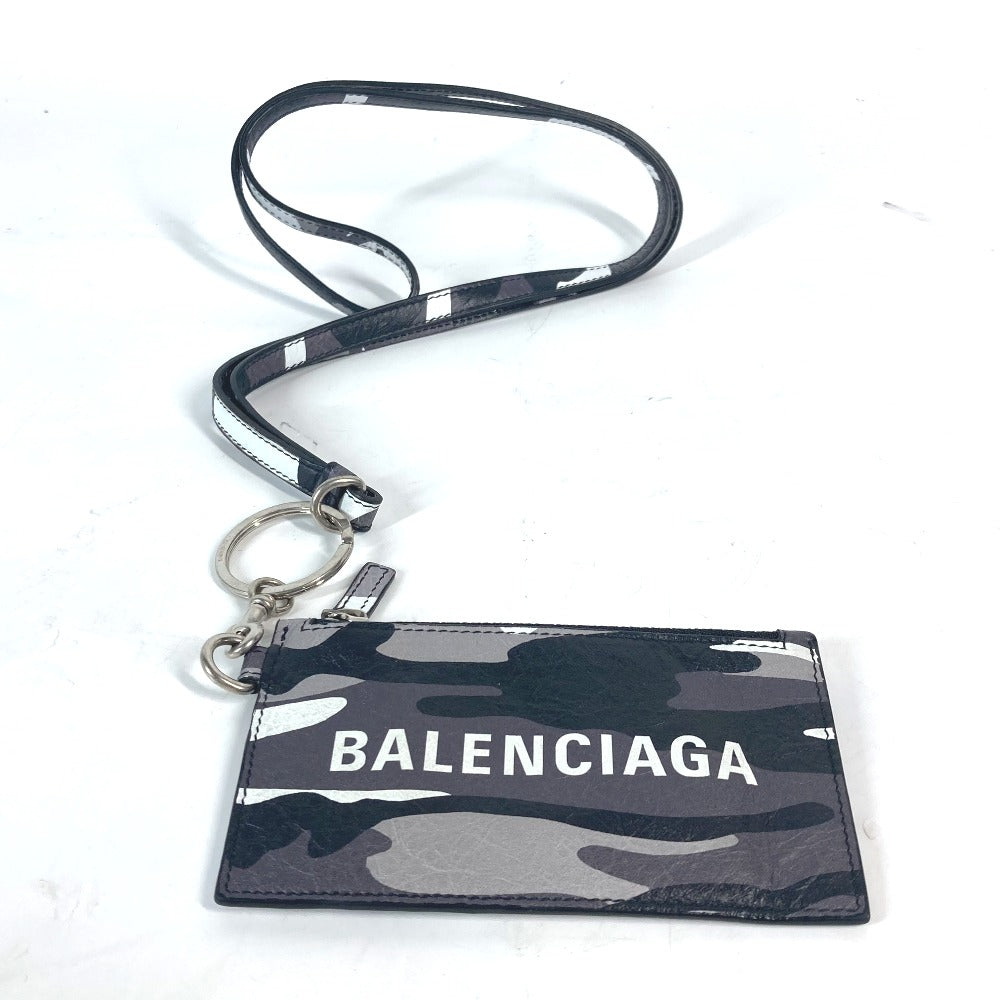 BALENCIAGA Coin case 594548 leather Black x silver Neck With Strap Wallet Camouflage camouflage logo mens(Unisex) Used Authentic