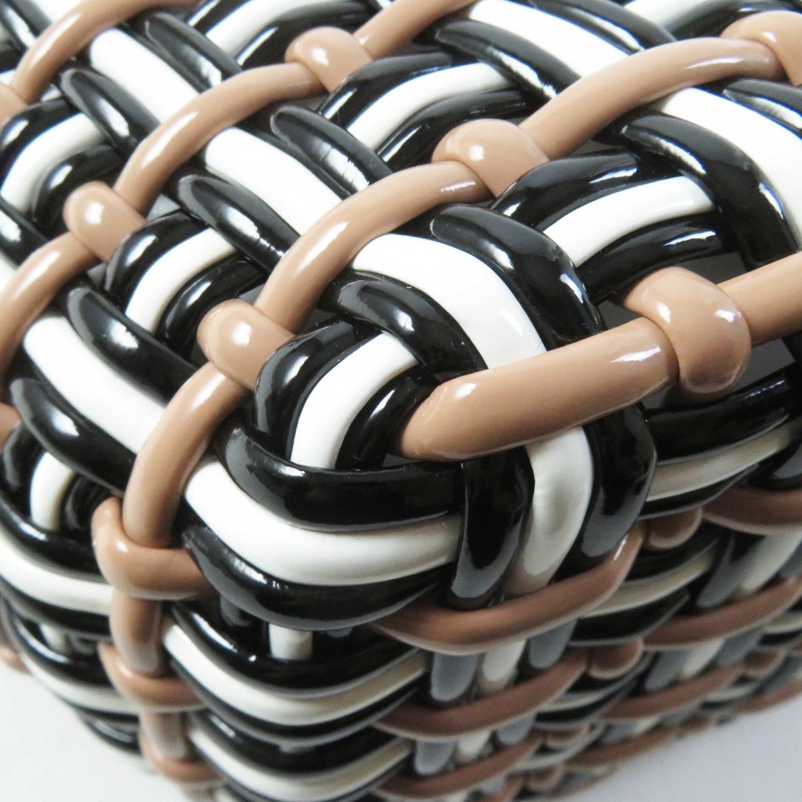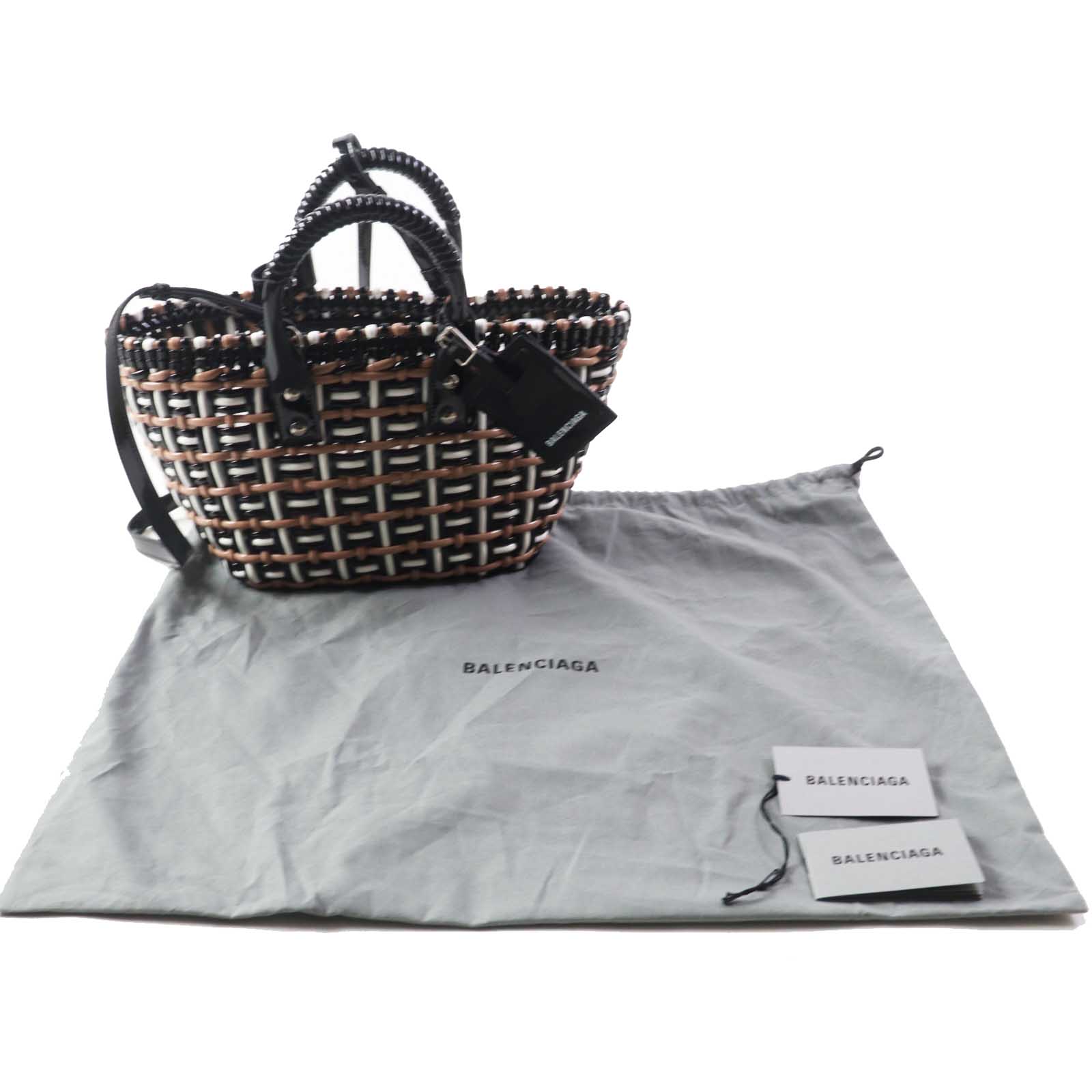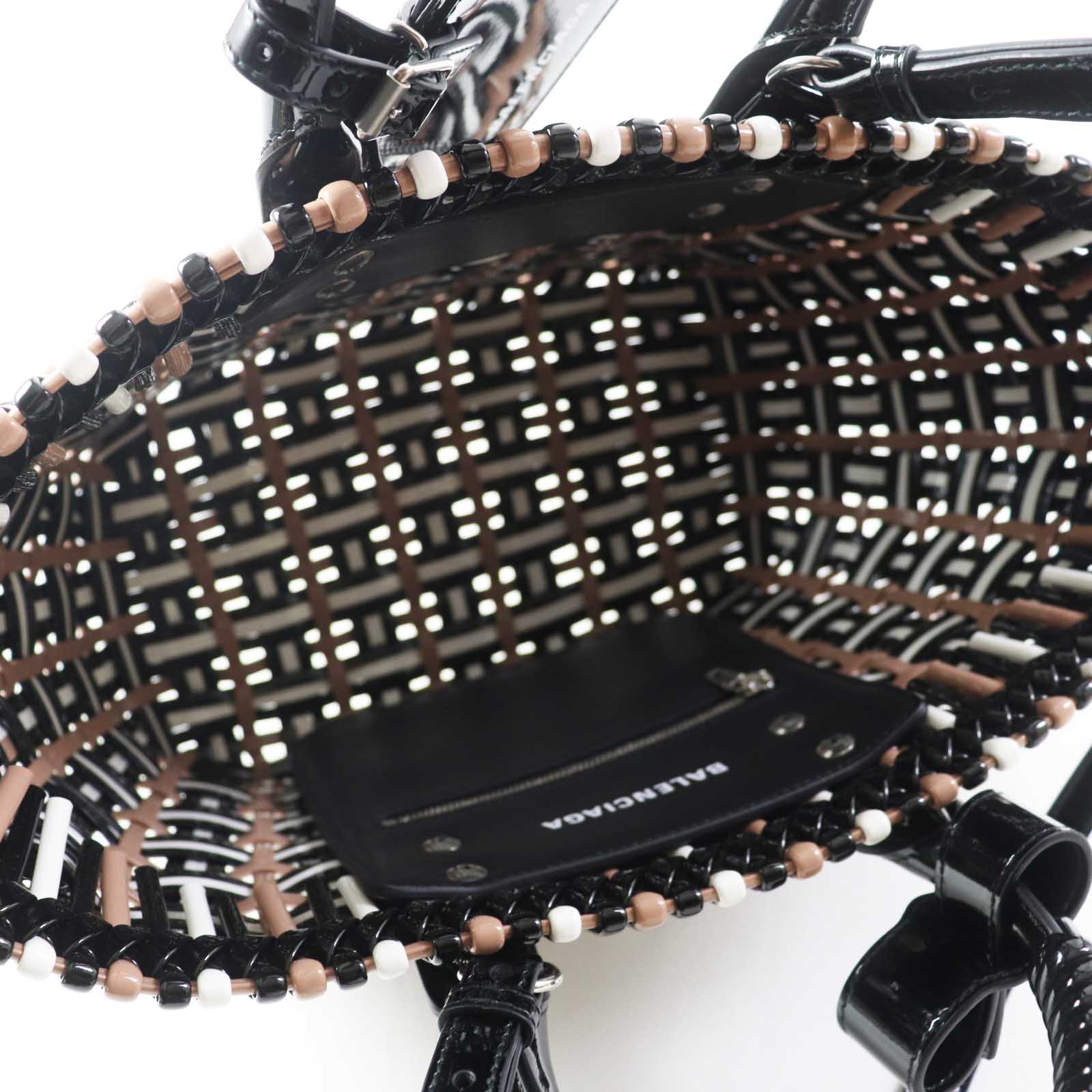 BALENCIAGA Handbag 671342 Patent, Enamel black white beige Bistro XS Women Used Authentic