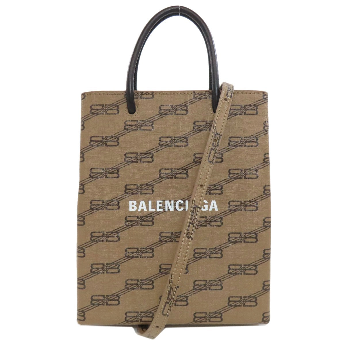 BALENCIAGA Handbag 693805 PVC Brown BB Monogram 2WAY Women Used Authentic