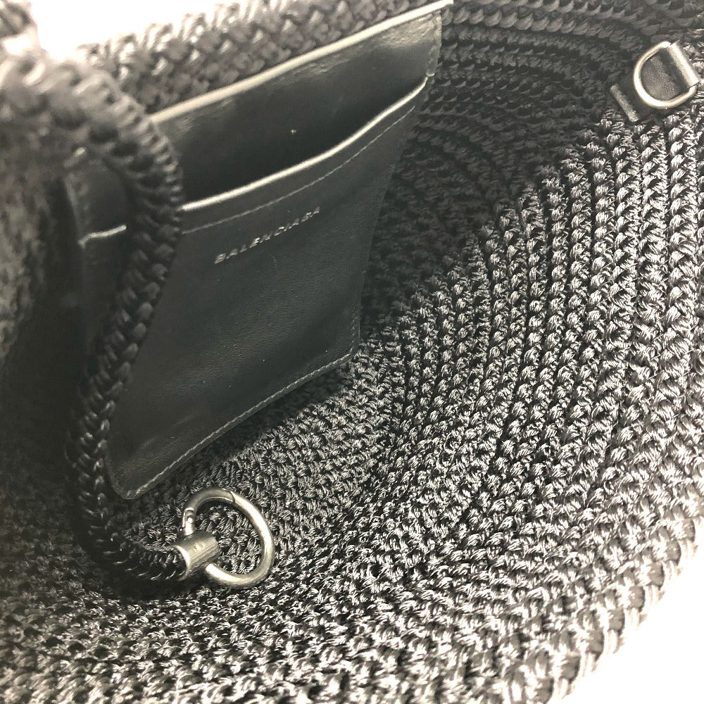 BALENCIAGA Handbag 695612 Nylon/Lambskin black logo ibiza basket bag Ibiza Small With Strap Basket Black Cord Women Used Authentic