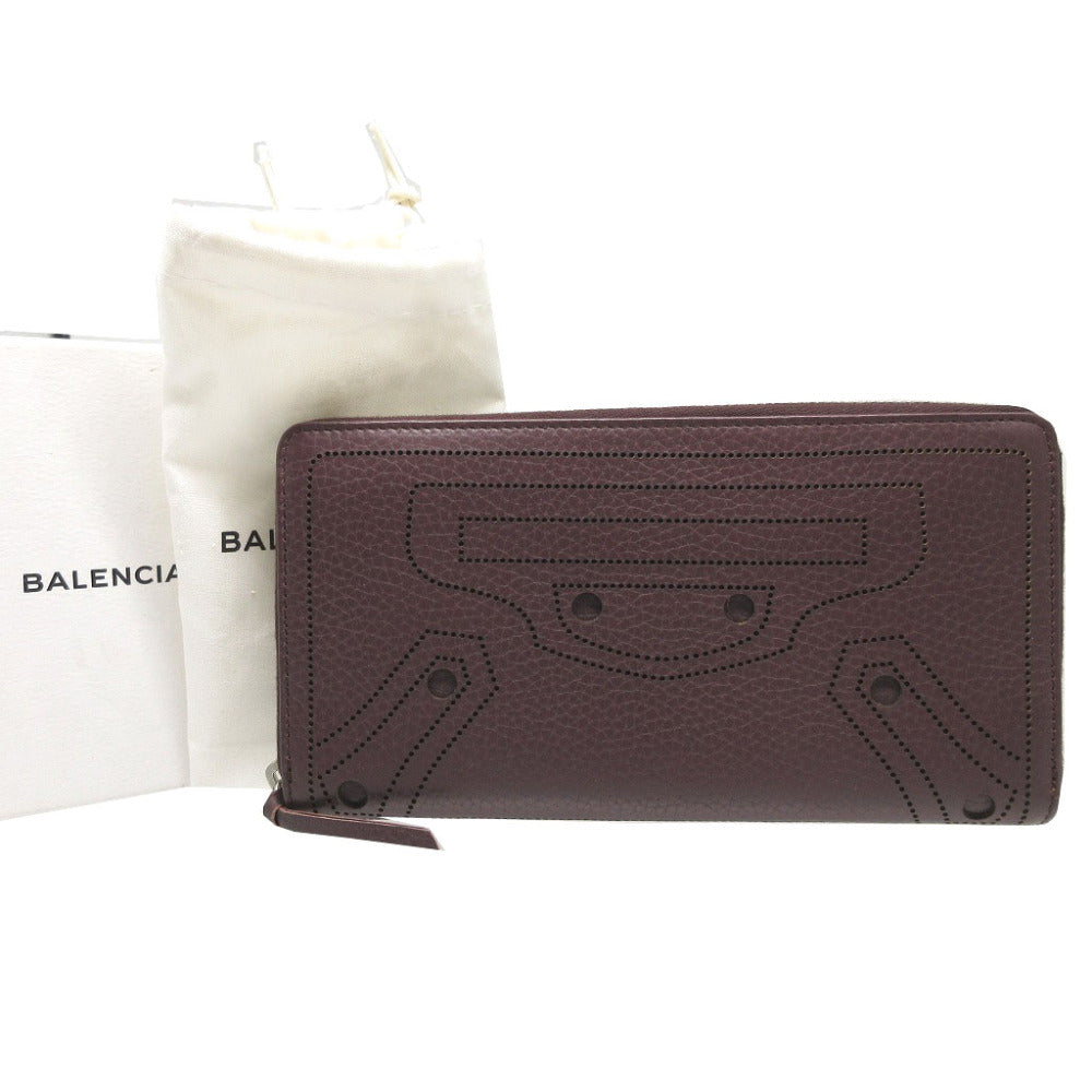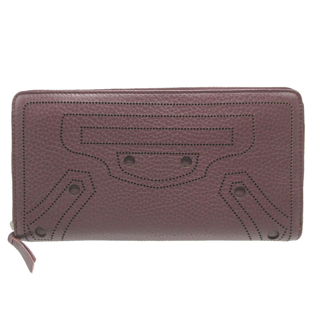 BALENCIAGA Long Wallet Purse 443521 leather Brown Zip Around Blackout Women(Unisex) Used Authentic