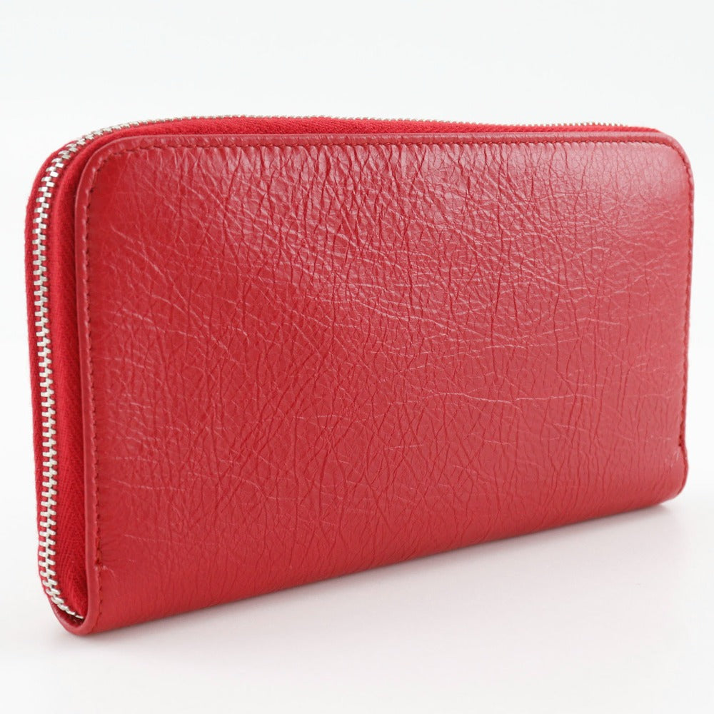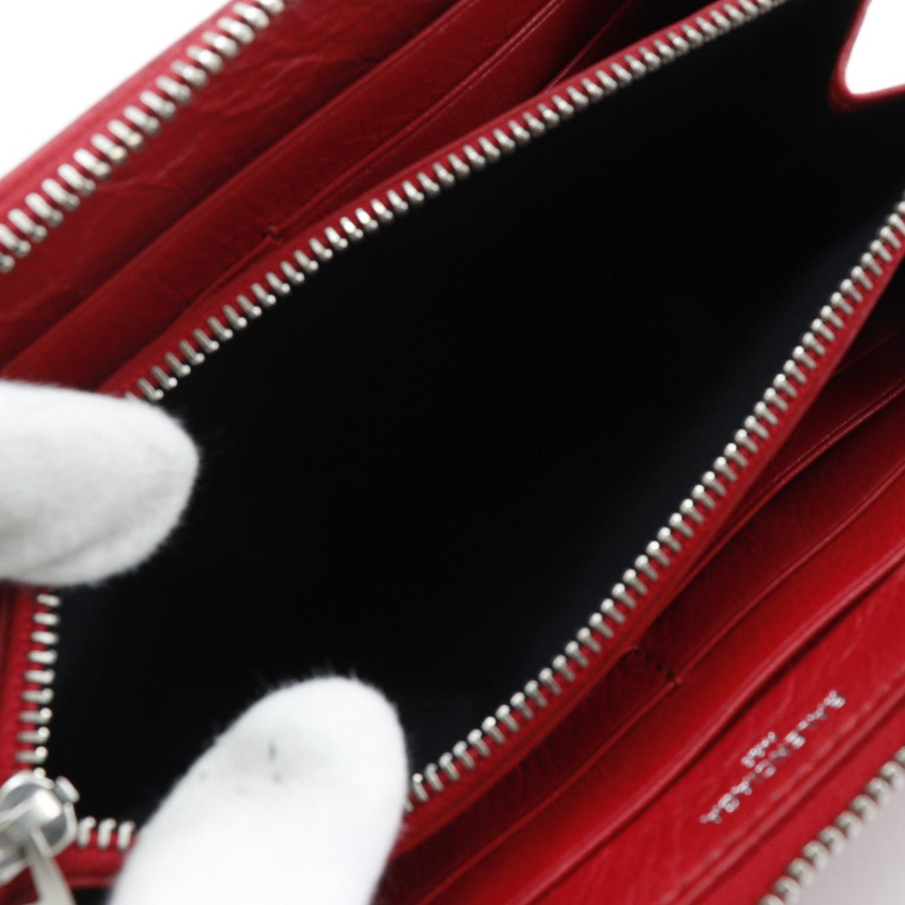 BALENCIAGA Long Wallet Purse 541996 Calfskin Red Zip Around Women Used Authentic