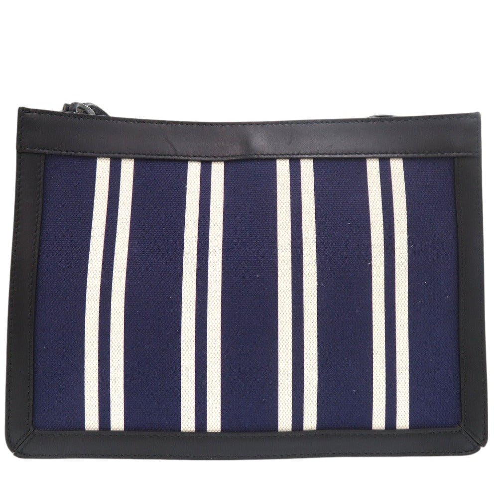 BALENCIAGA Shoulder Bag 339937 canvas Navy Pochette Stripe Women Used Authentic