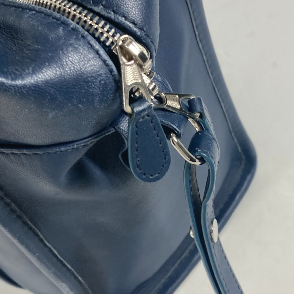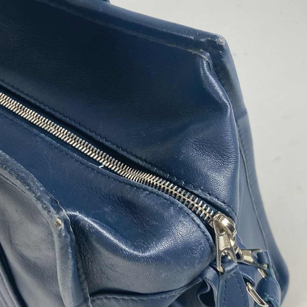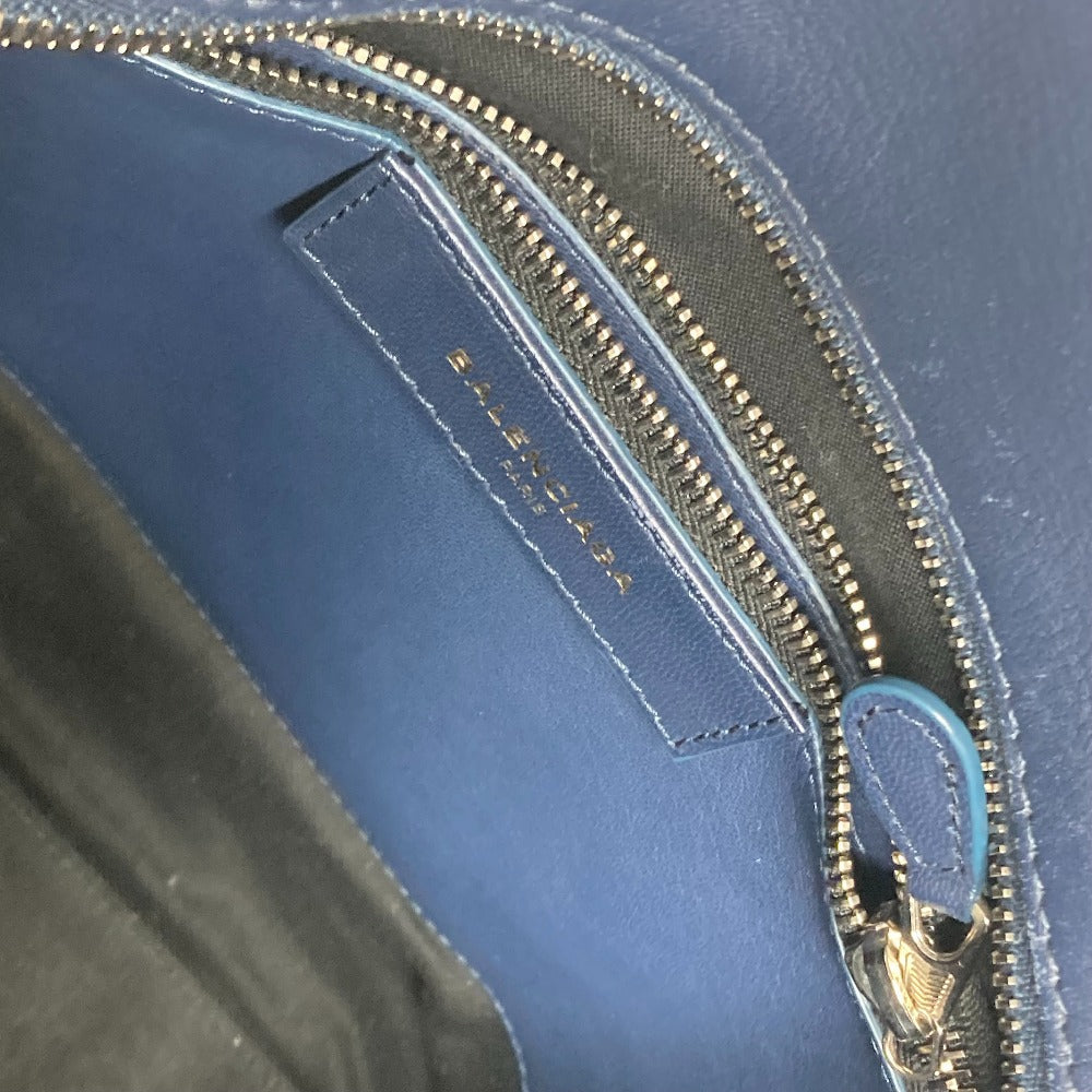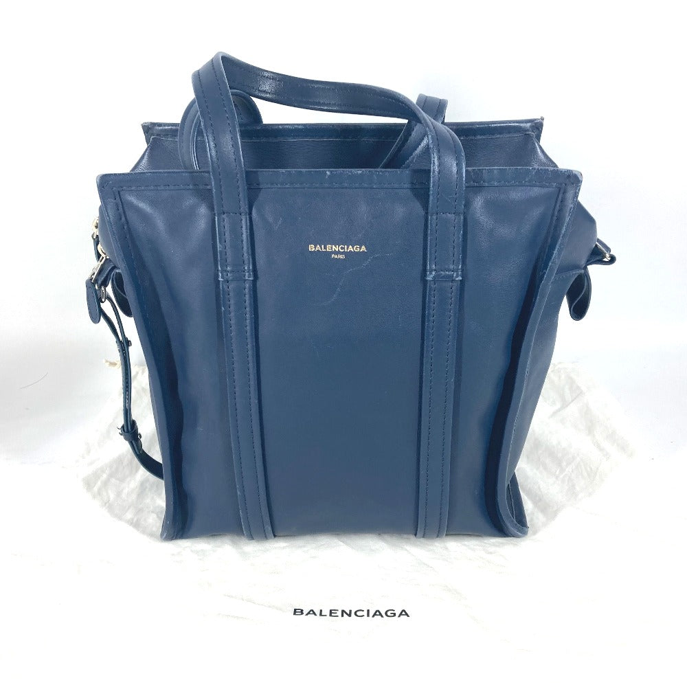 BALENCIAGA Tote Bag 443096 leather Navy Bazaar Shopper S Women Used Authentic