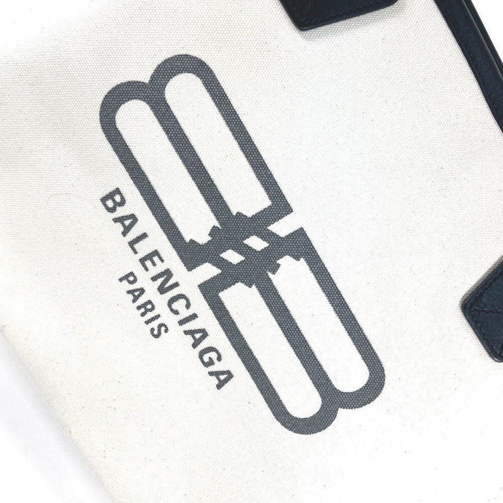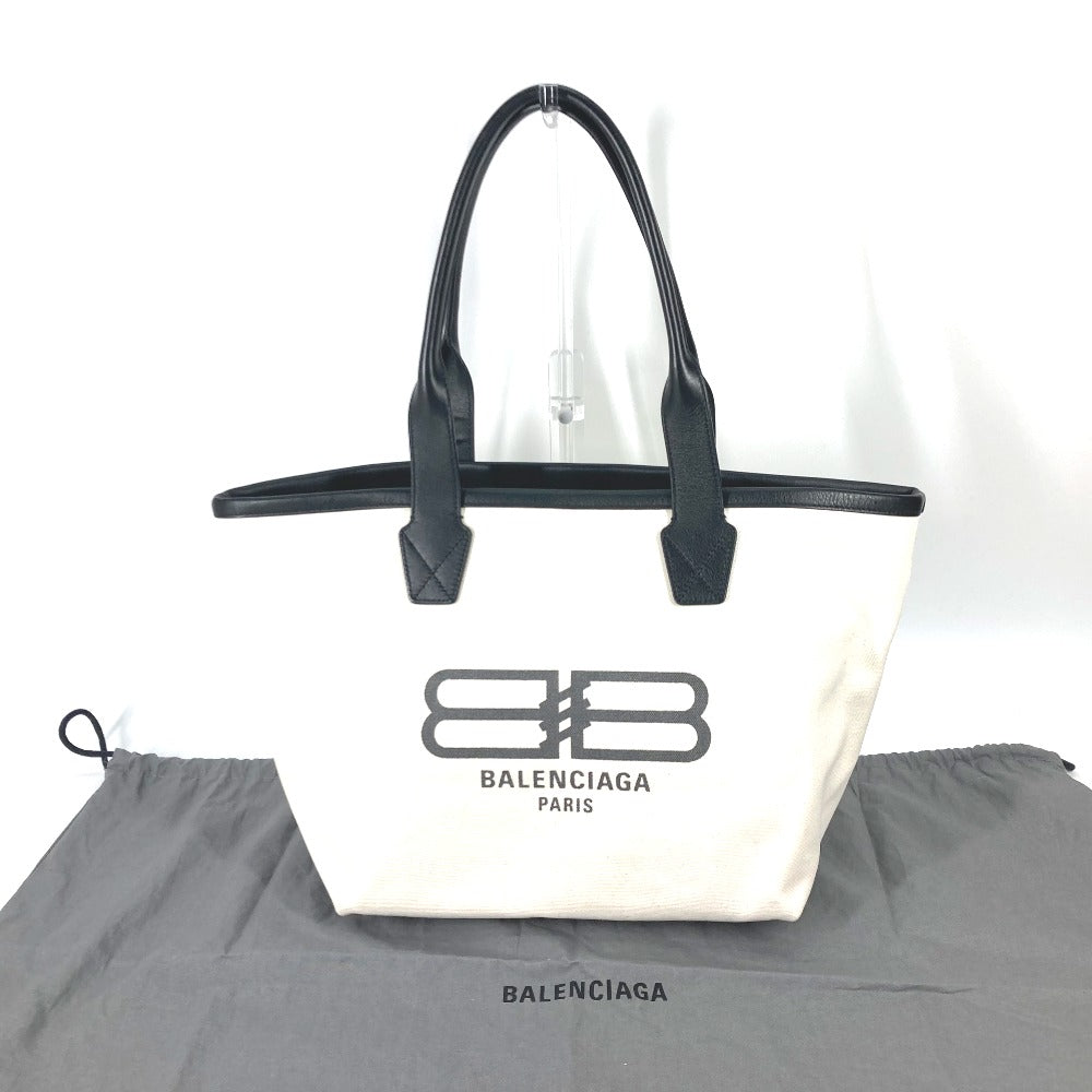 BALENCIAGA Tote Bag 692068 Canvas / leather white By color jumbo logo small Women Used Authentic