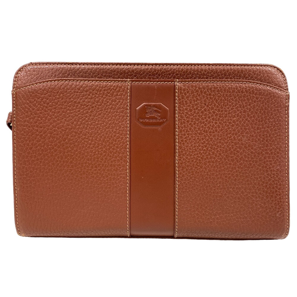 BURBERRY business bag leather Brown clutch bag embossed Carriage mens Used Authentic