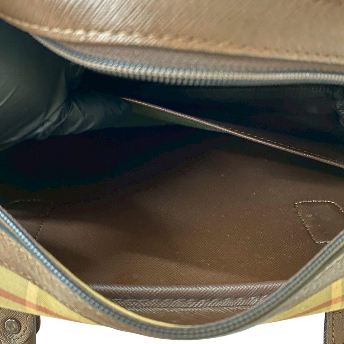 BURBERRY Handbag Canvas, Leather Brown Nova Check Shadow Horse logo Women Used Authentic