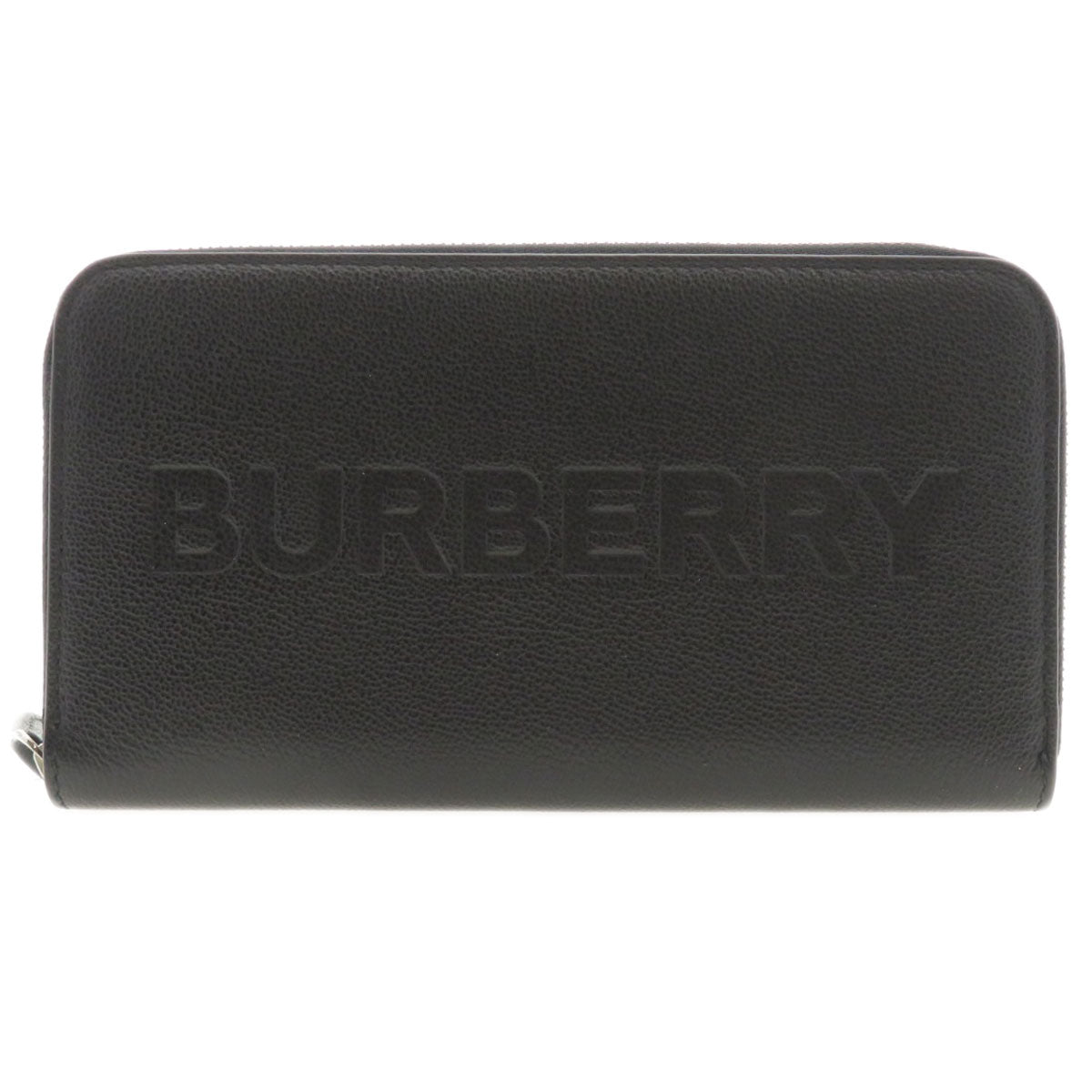 BURBERRY Long Wallet Purse leather black Logo motif mens(Unisex) Used Authentic