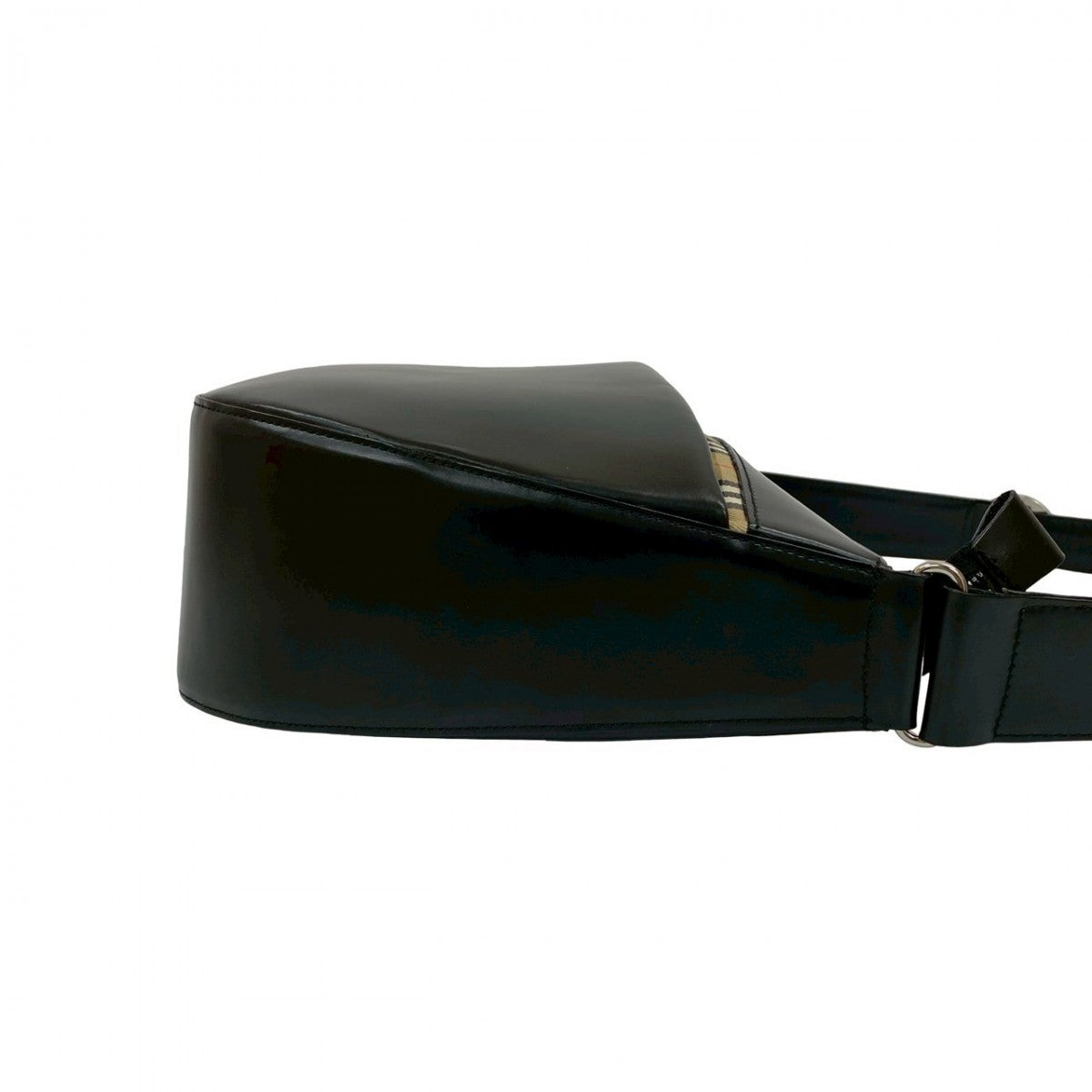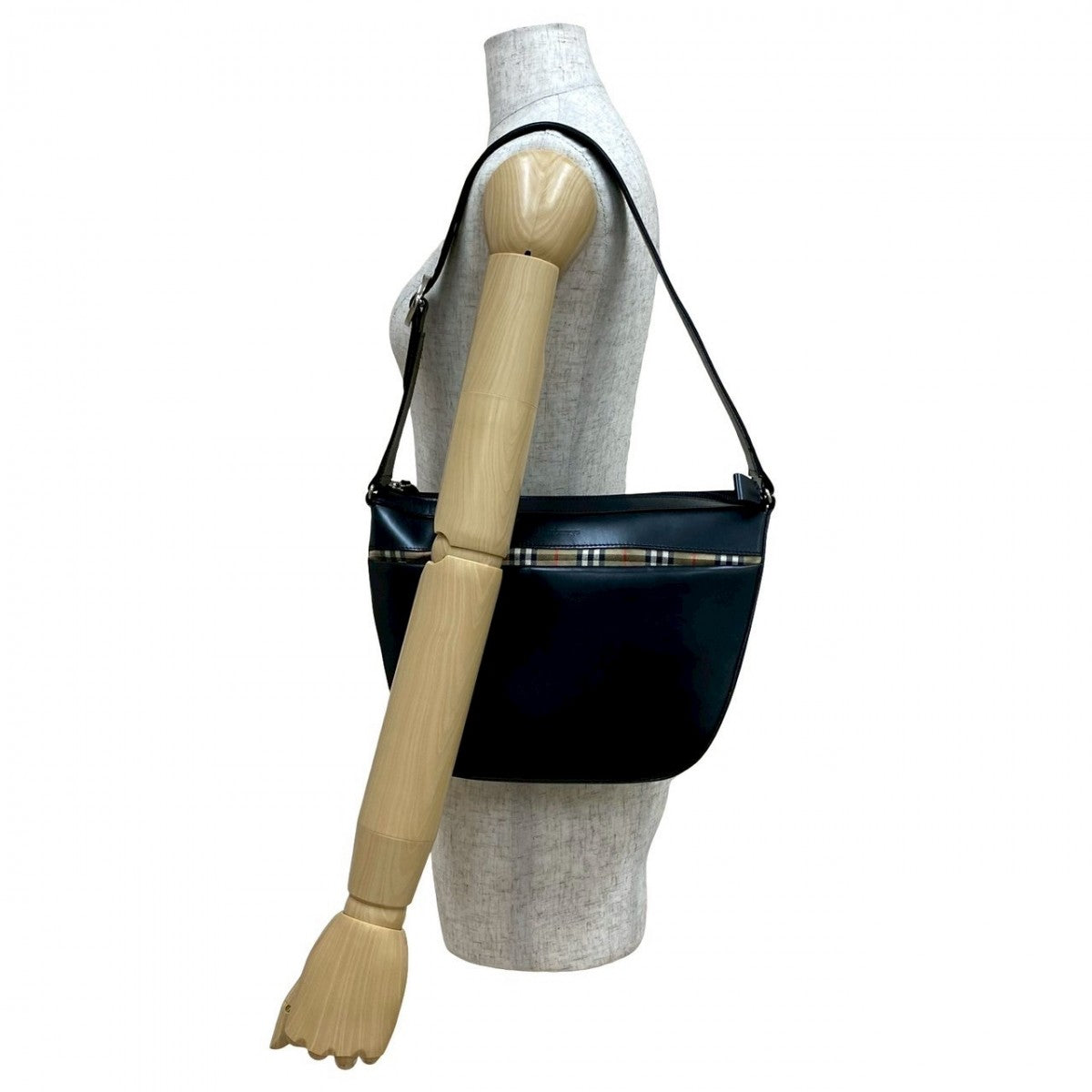 BURBERRY Shoulder Bag Calfskin, Leather black Novacheck logo Women Used Authentic
