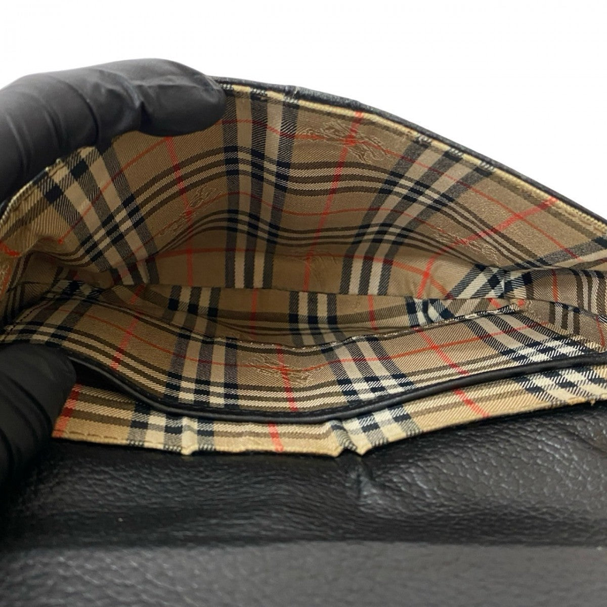 BURBERRY Shoulder Bag leather black Shadow Horse logo Nova Check Women Used Authentic