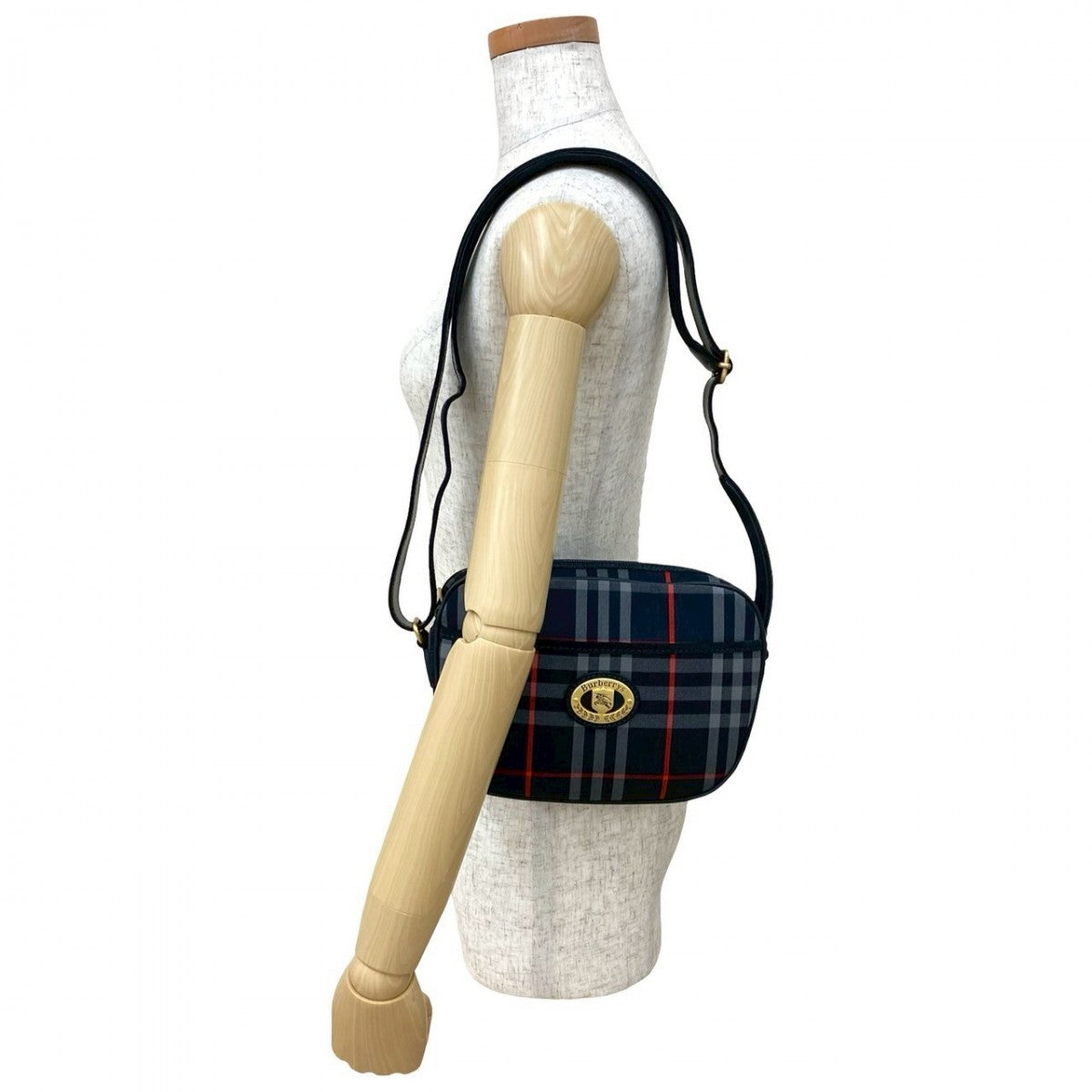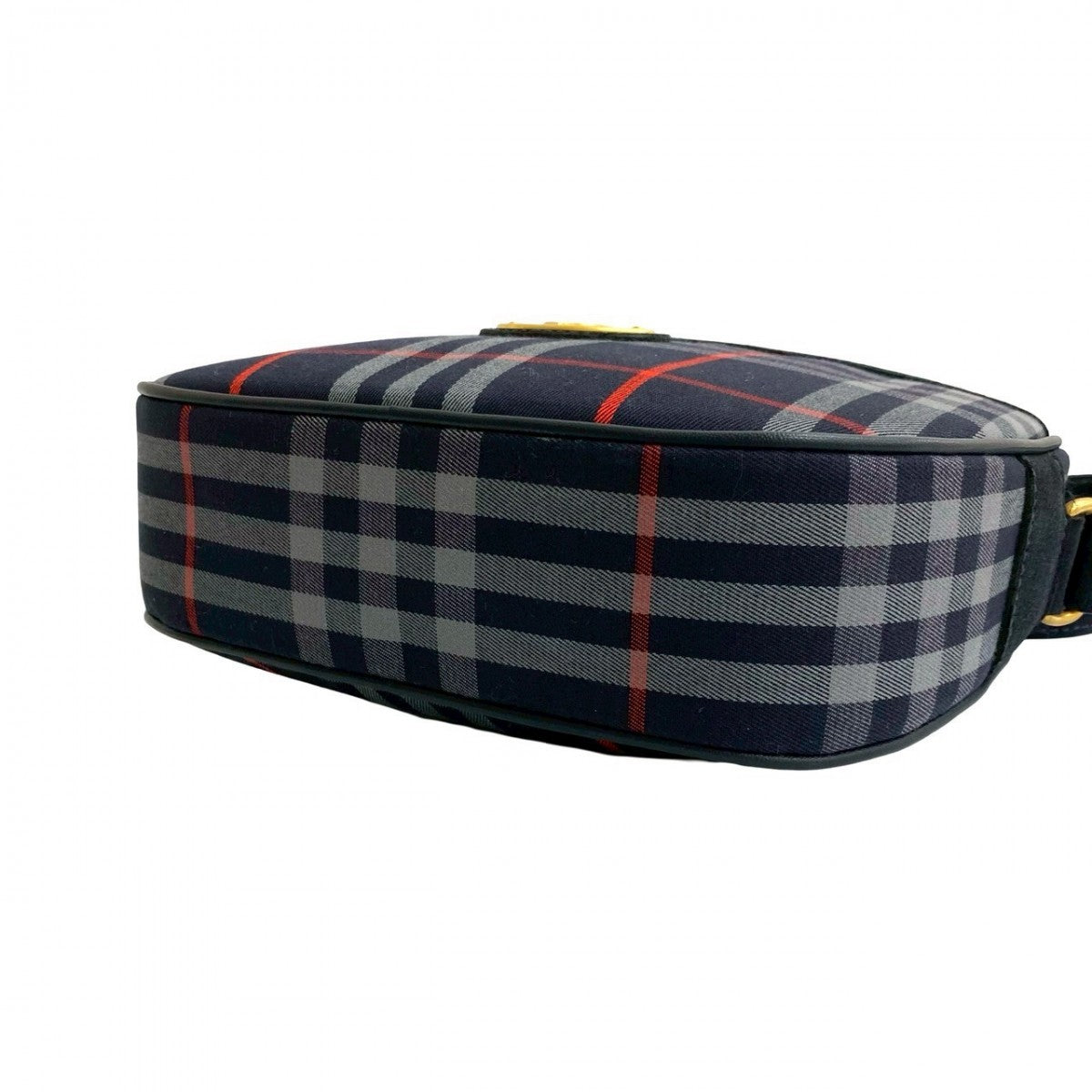 BURBERRY Shoulder Bag Leather, Canvas Navy Shadow Horse logo Metal Nova Check Women Used Authentic