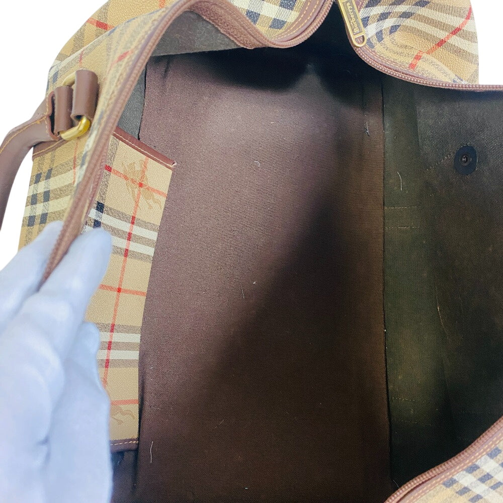 Burberrys Boston Duffel bag PVC, Leather beige Hand Bag Travel Bag check unisex(Unisex) Used Authentic