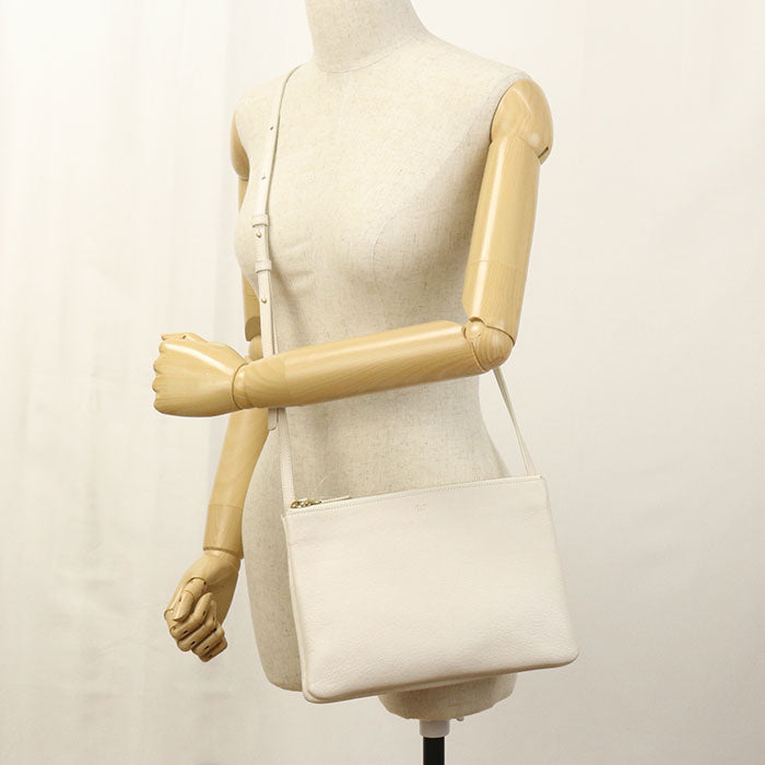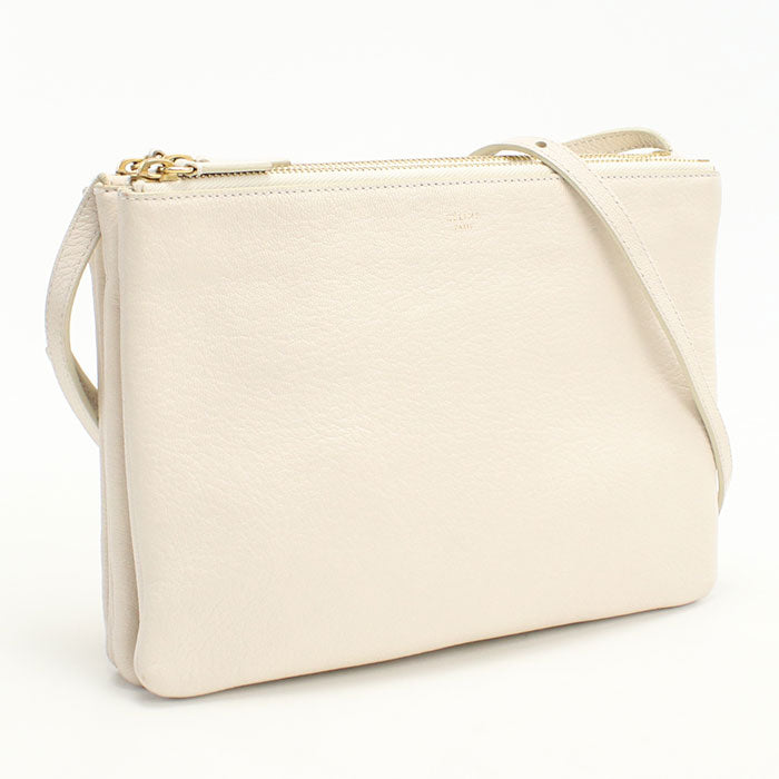 CELINE 171453 Shoulder Bag Trio Large Crossbody bag leather off white Women |