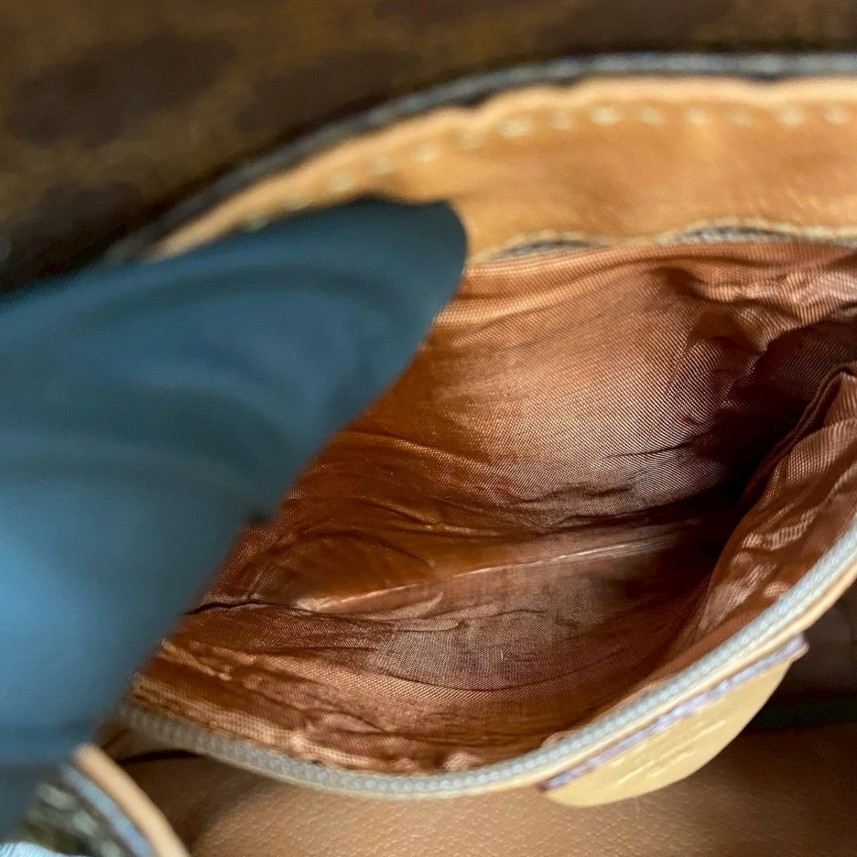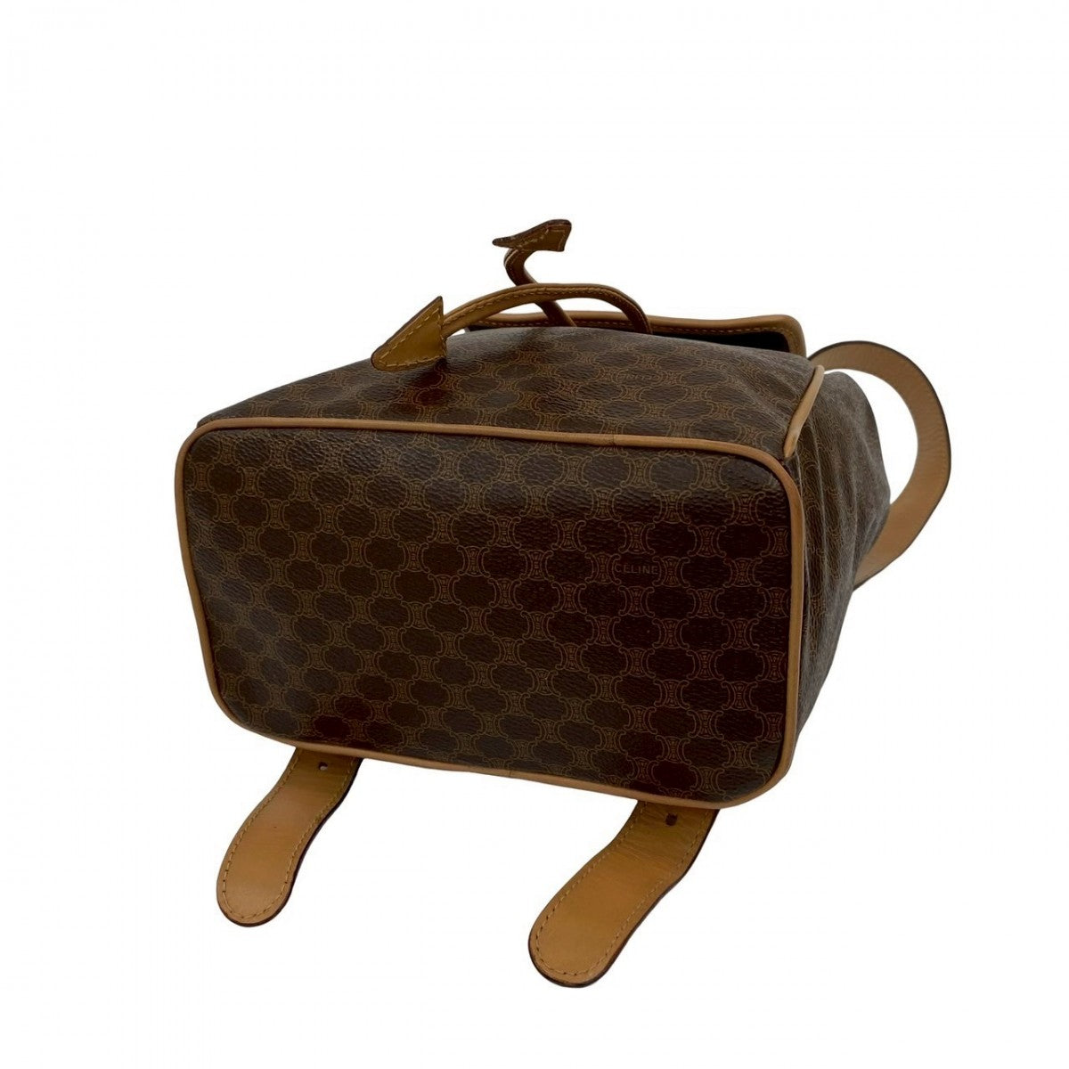 CELINE Backpack leather Brown Macadam Pattern logo ring Metal Women Used Authentic