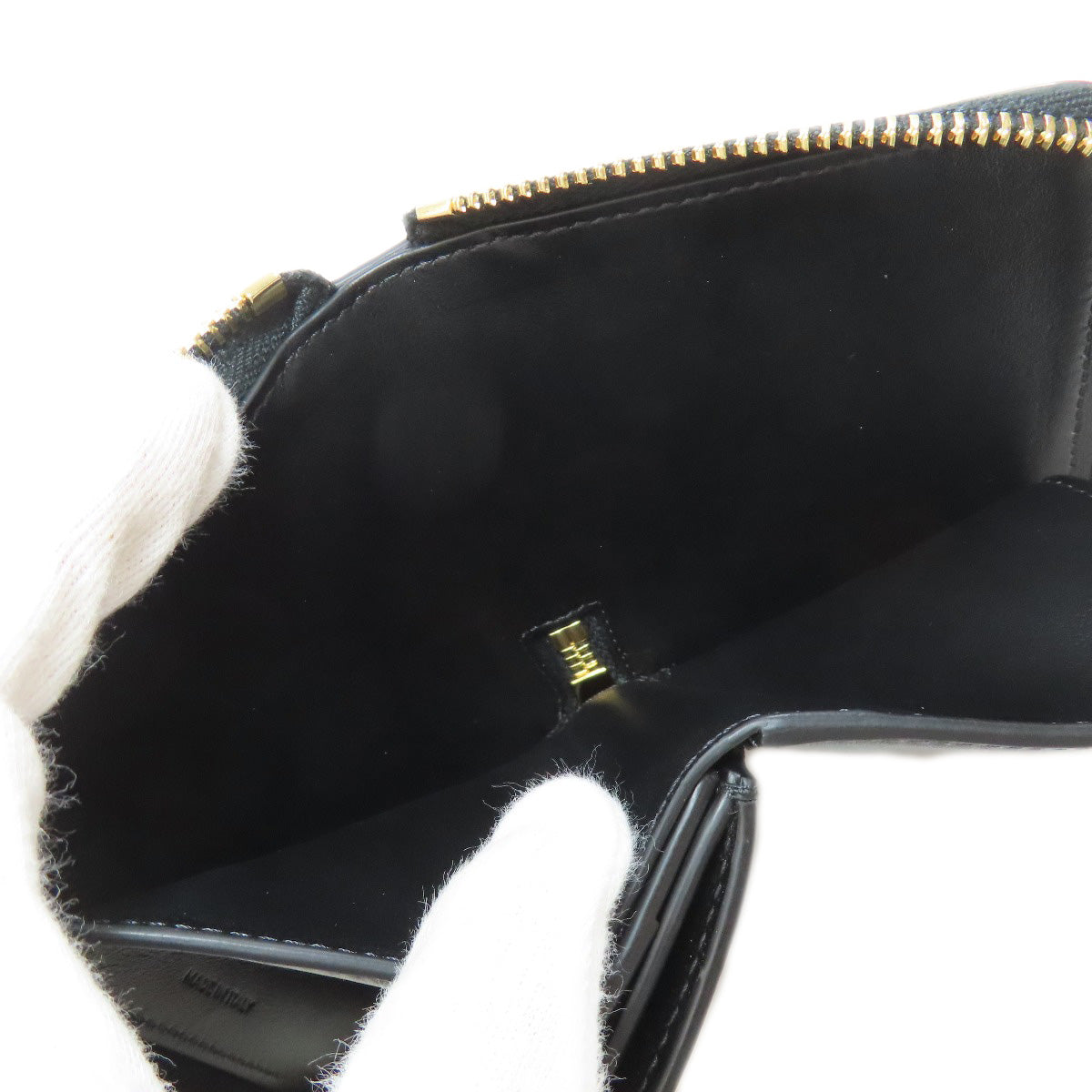 CELINE Bifold Wallet leather black logo Women Used Authentic
