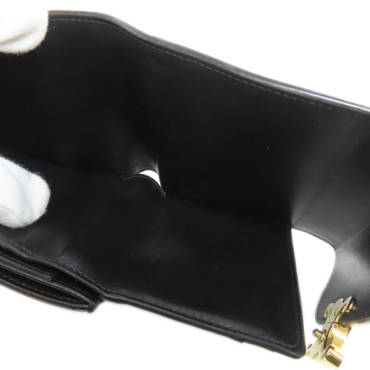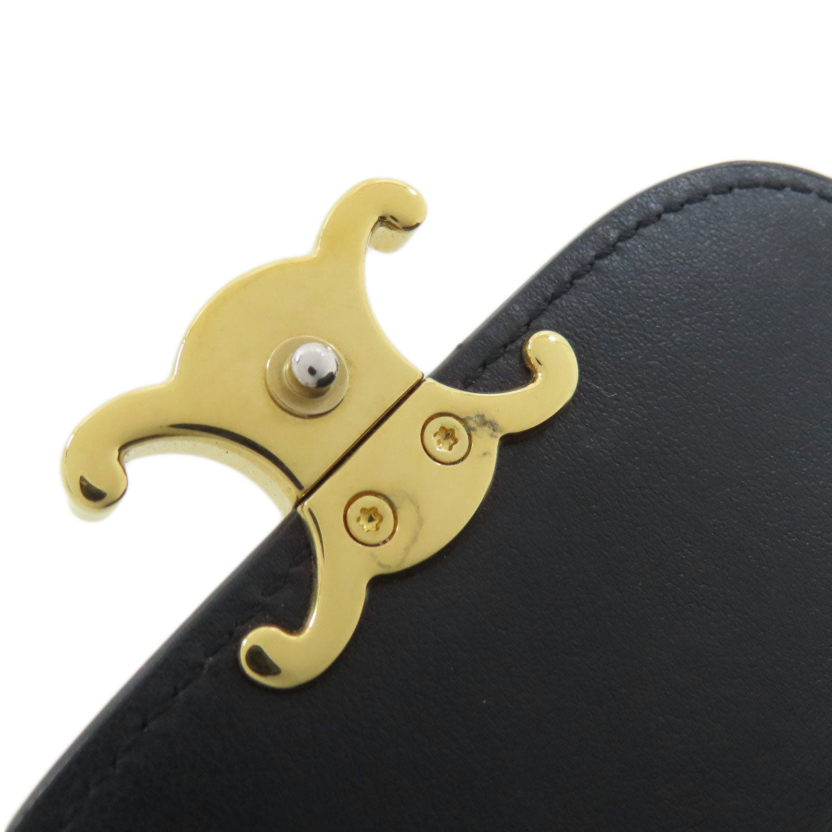 CELINE Bifold Wallet leather black Triomphe Flap Women Used Authentic