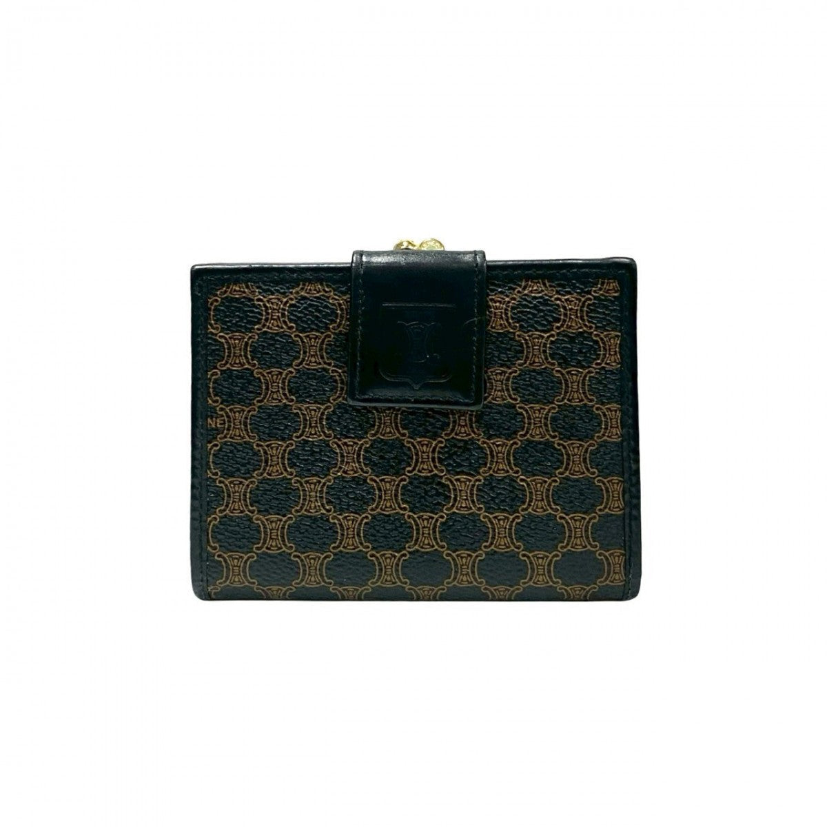 CELINE Bifold Wallet Leather, PVC black Macadam Blason Triomphe Pattern Women Used Authentic