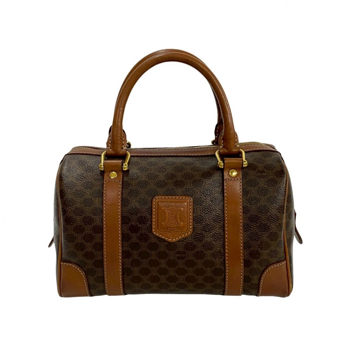 CELINE Boston Duffel bag Leather, PVC Brown Macadam Blason Triomphe Pattern Women Used Authentic