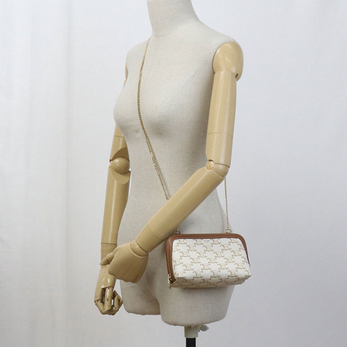 CELINE ChainShoulder Bag Triomphe canvas Diagonal PVC White Women |