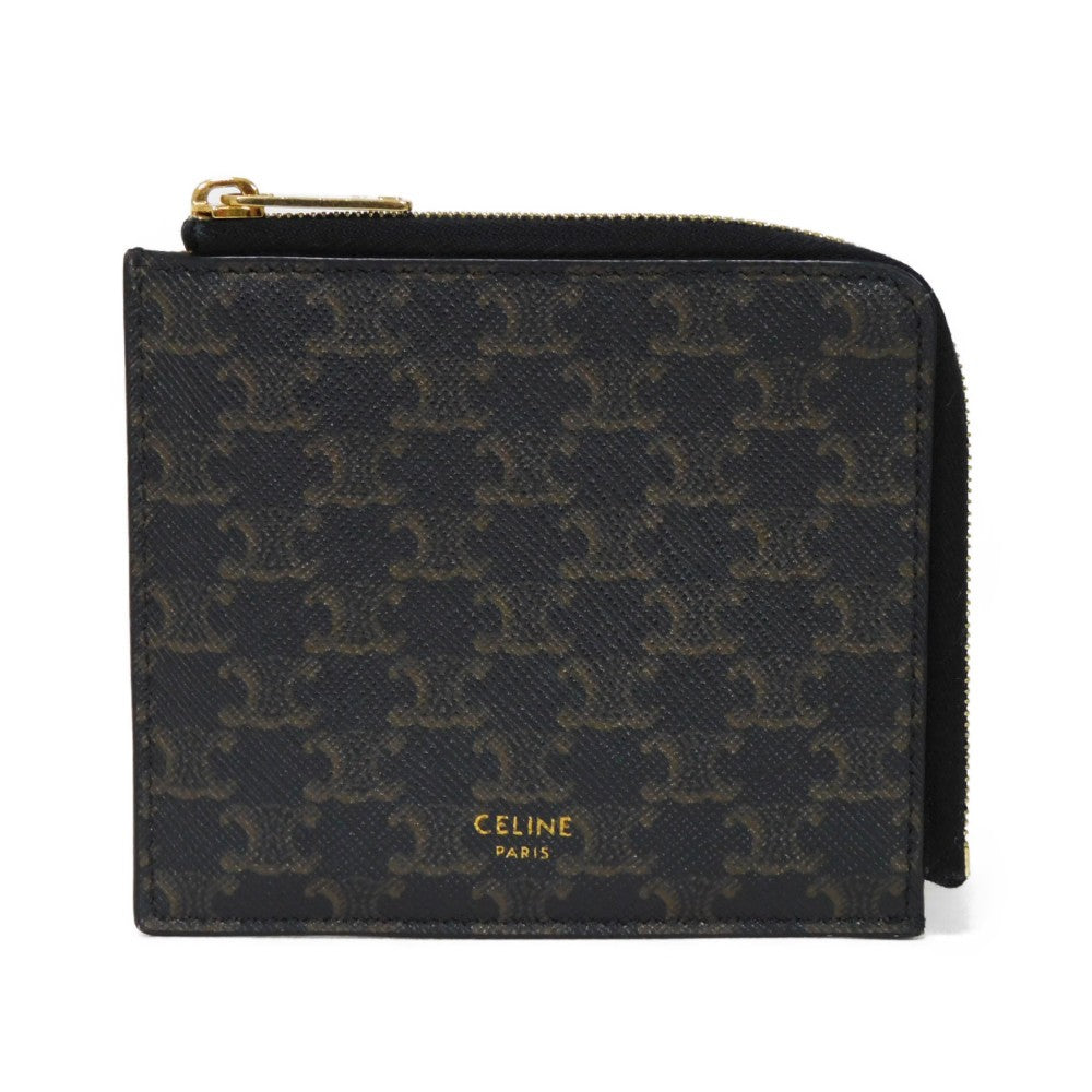CELINE Coin case 10D882CCP.04LU Triomphe canvas (coating processing) black Foil stamping old style khaki L-shaped zipper wallet New logo Triomphe coin purse unisex(Unisex) Used Authentic