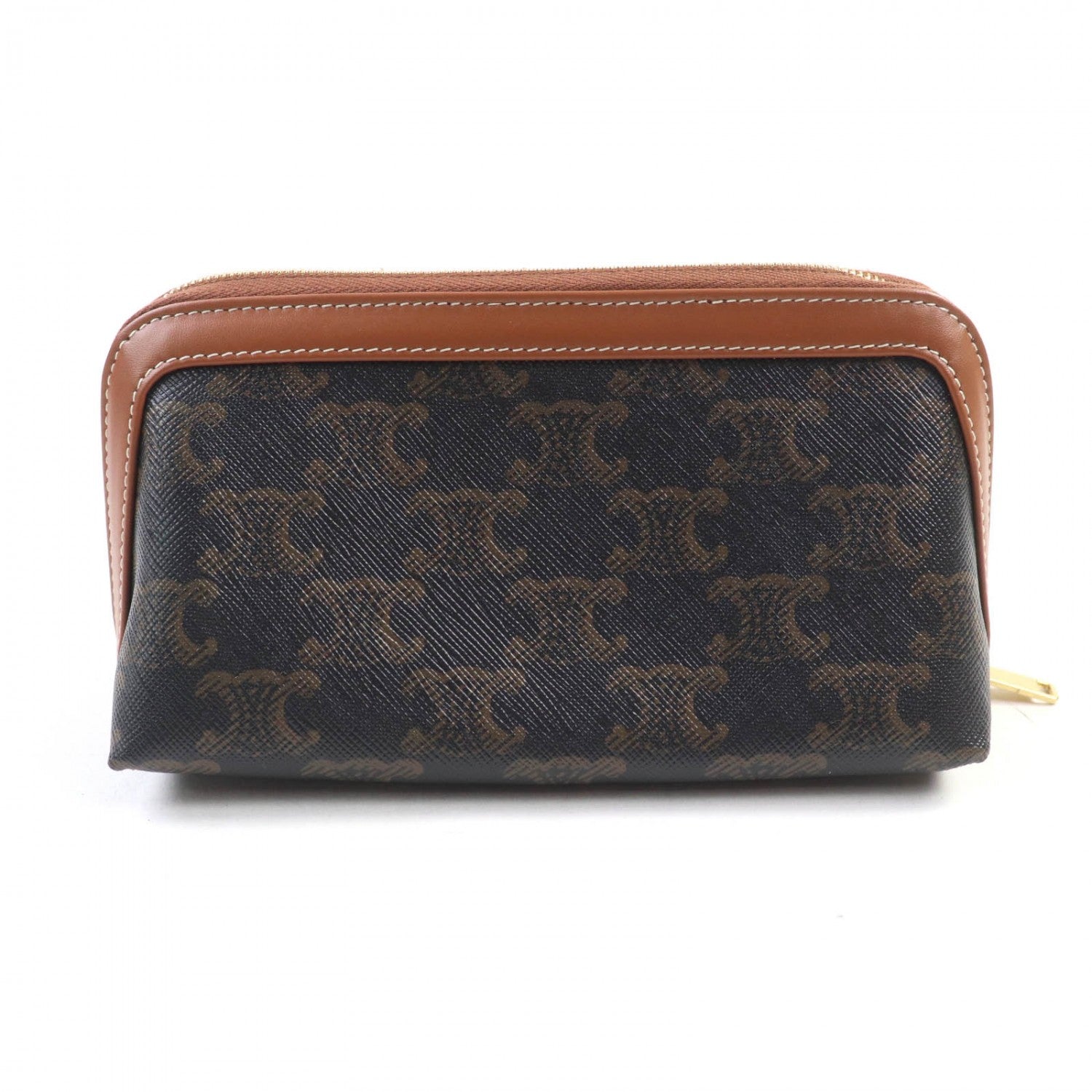 CELINE Cosmetics Pouch 4M5032CZJ leather Brown Cosmetic Lipstick Pouch