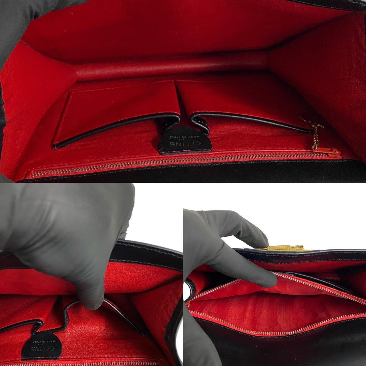 CELINE Handbag Calfskin, Leather black Ribbon logo Metal Women Used Authentic