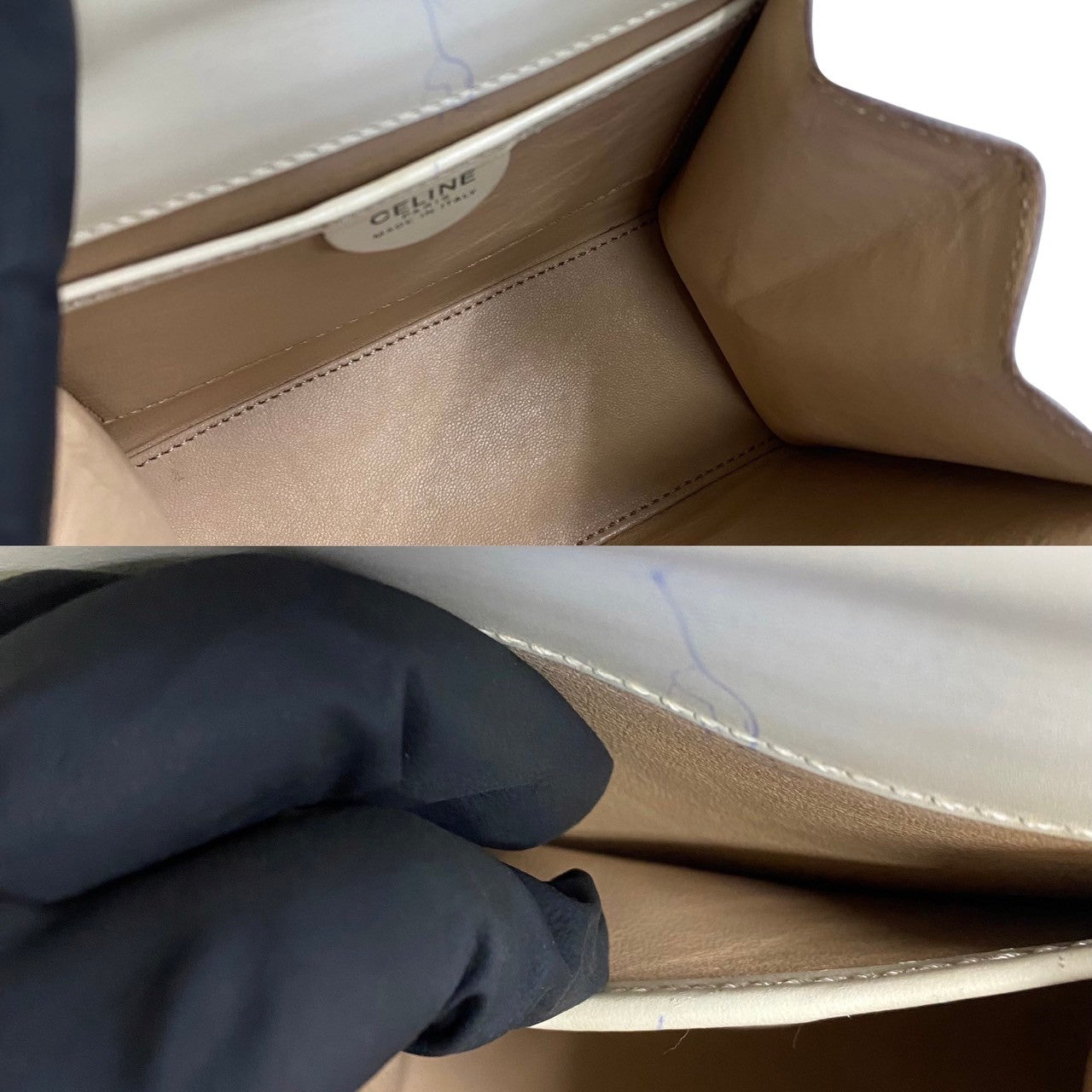 CELINE Handbag Calfskin white logo Metal Women Used Authentic