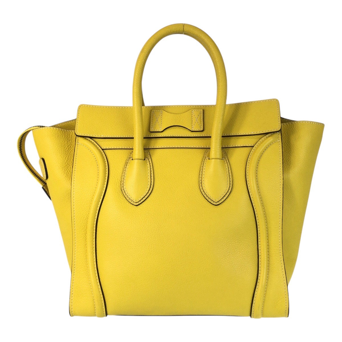 CELINE Handbag CU-1102 leather Yellow SilverMetal Handbag Tote Bag Luggage mini shopper Women Used Authentic