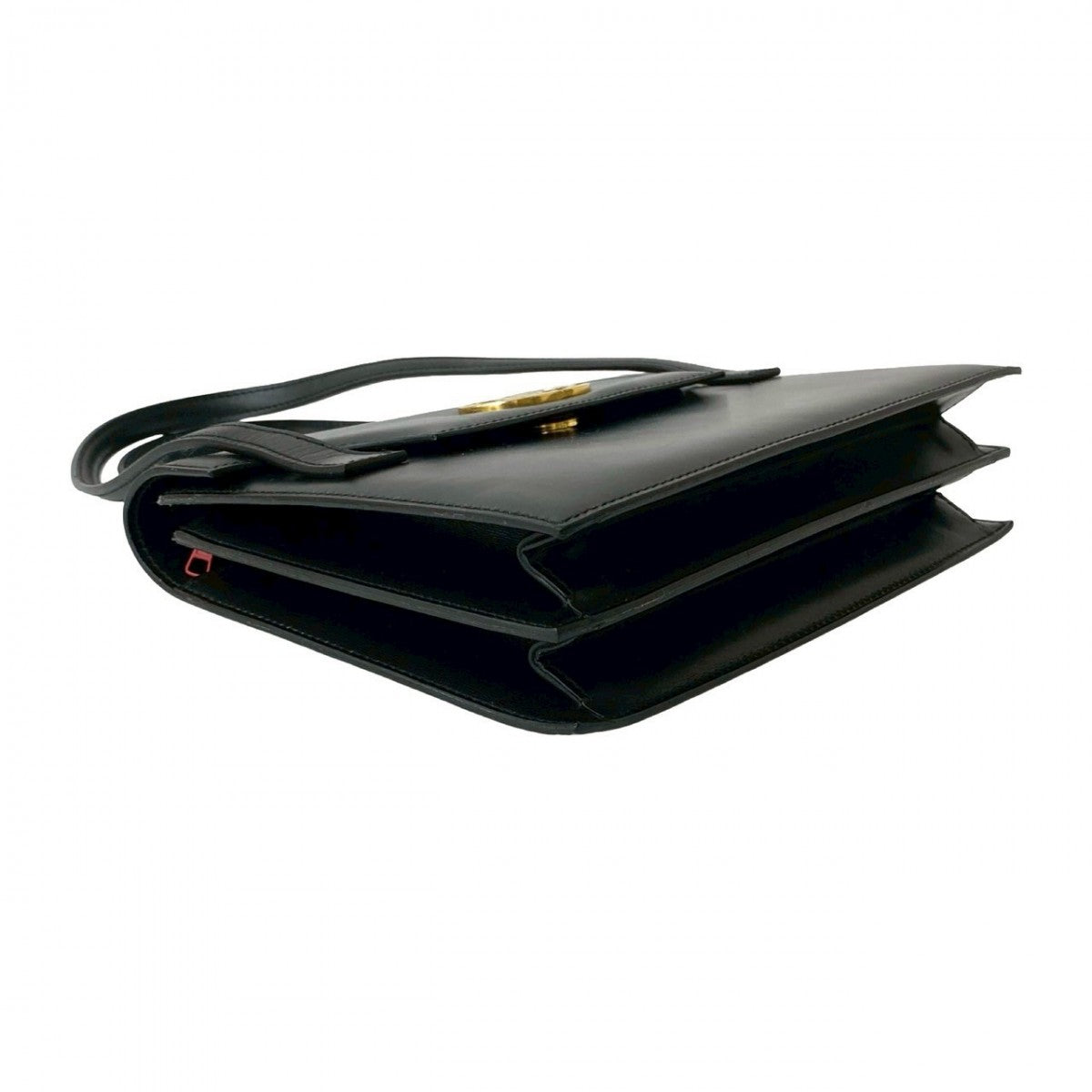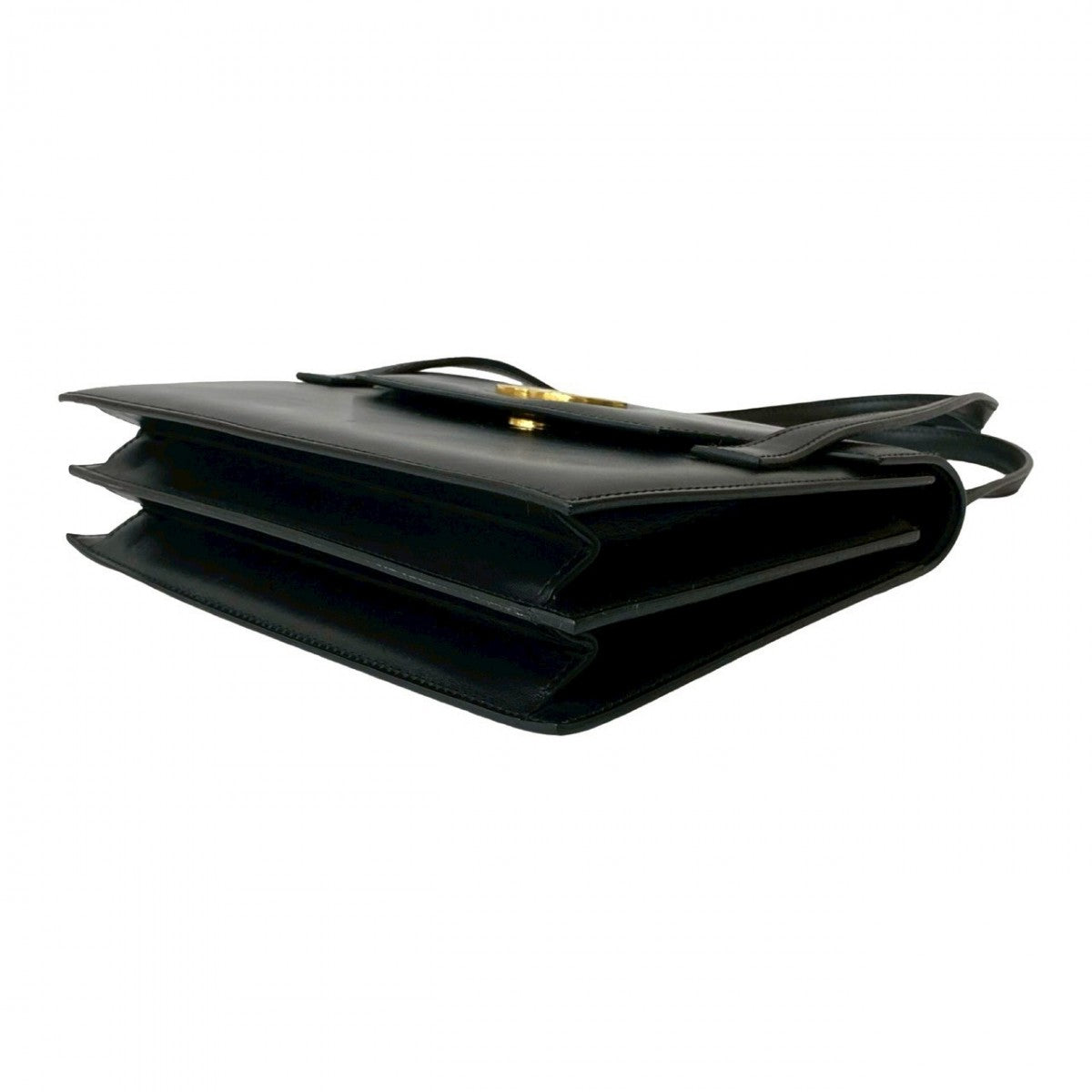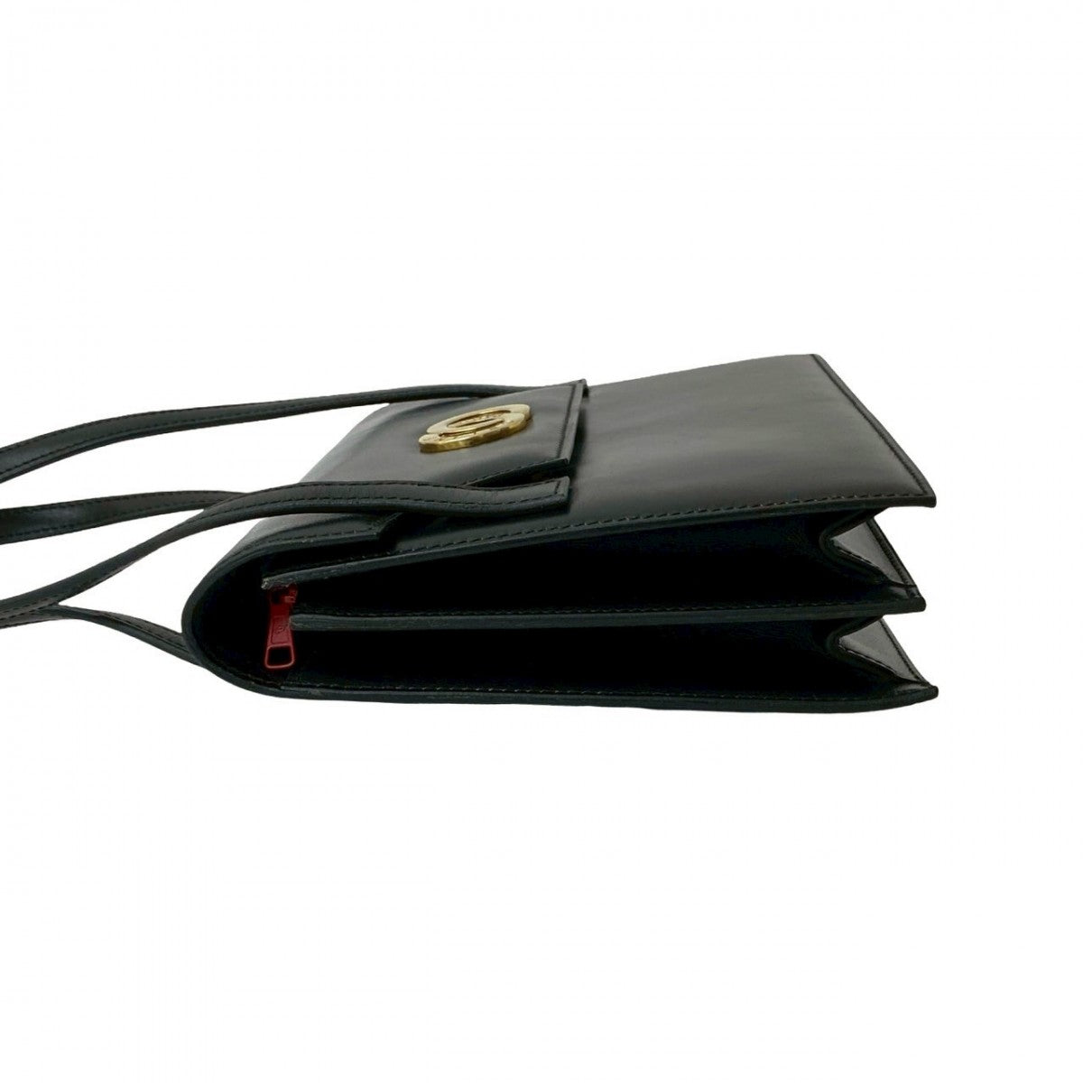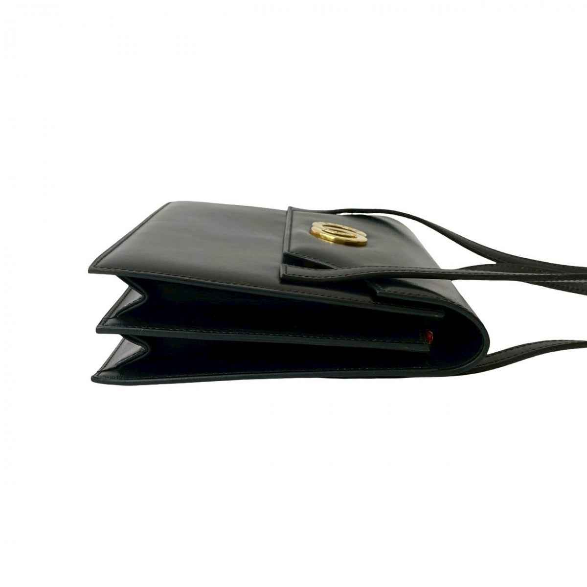 CELINE Handbag leather black Circle logo Metal Women Used Authentic