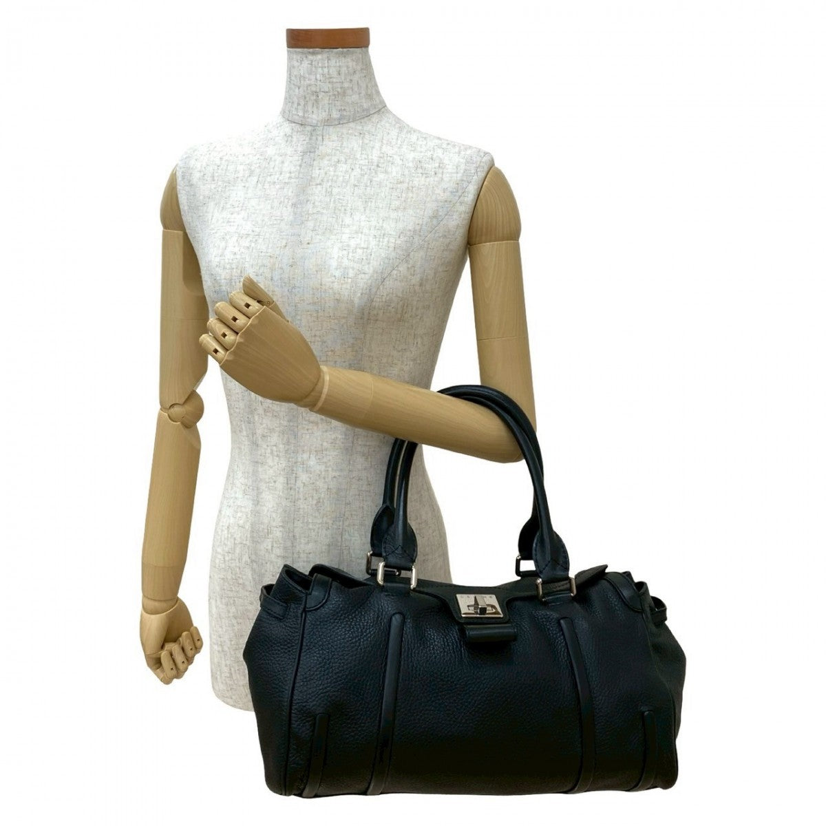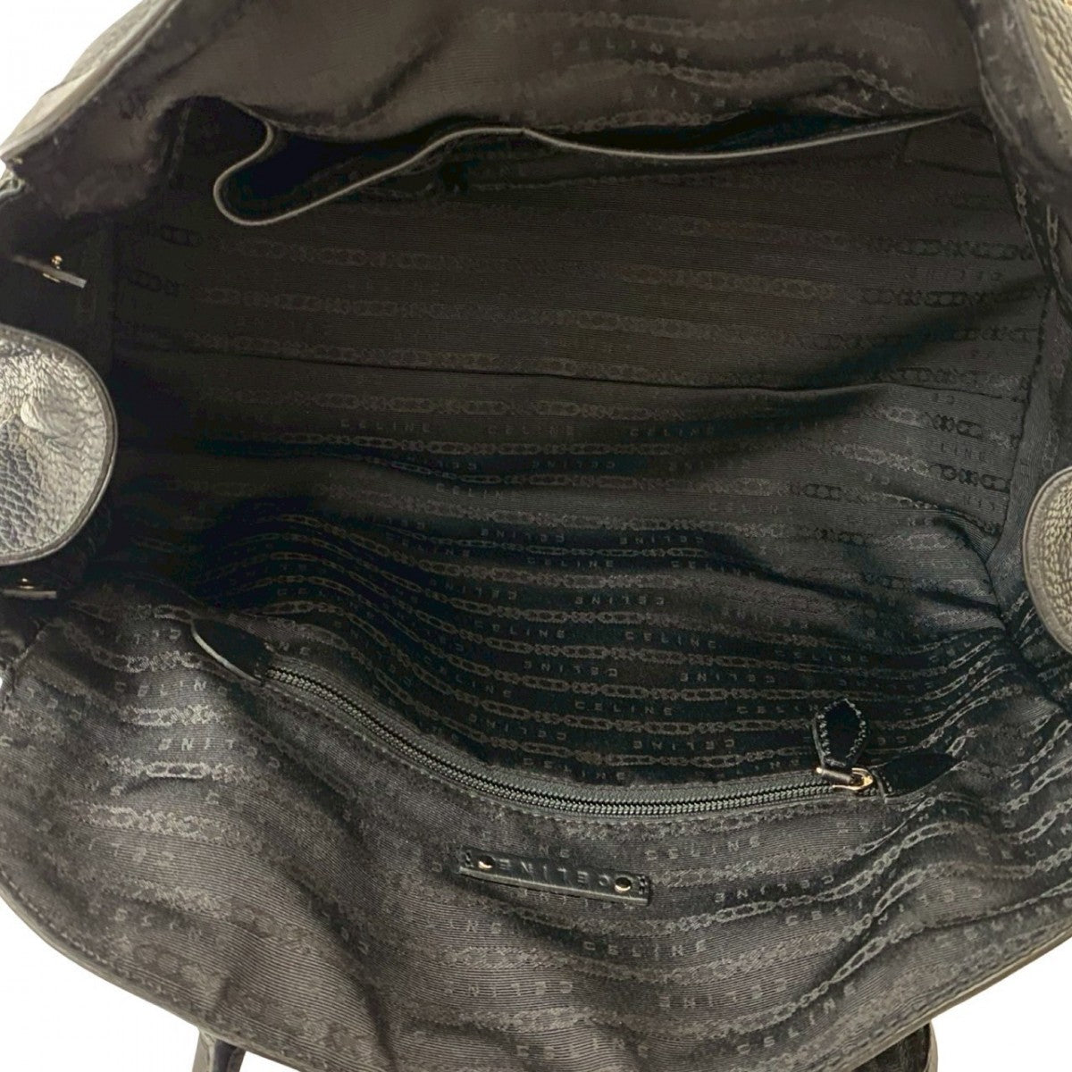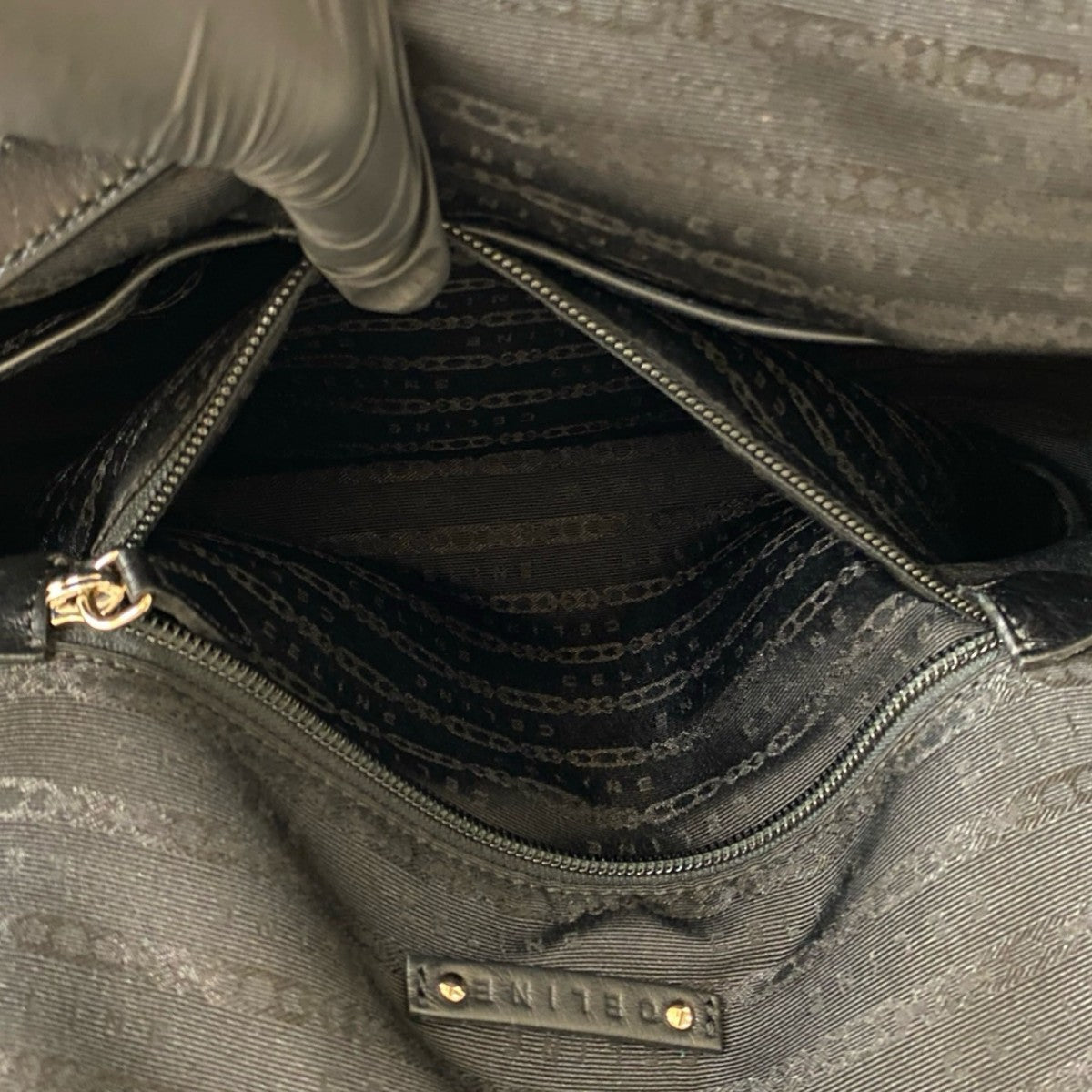 CELINE Handbag leather black celine logo Metal Women Used Authentic