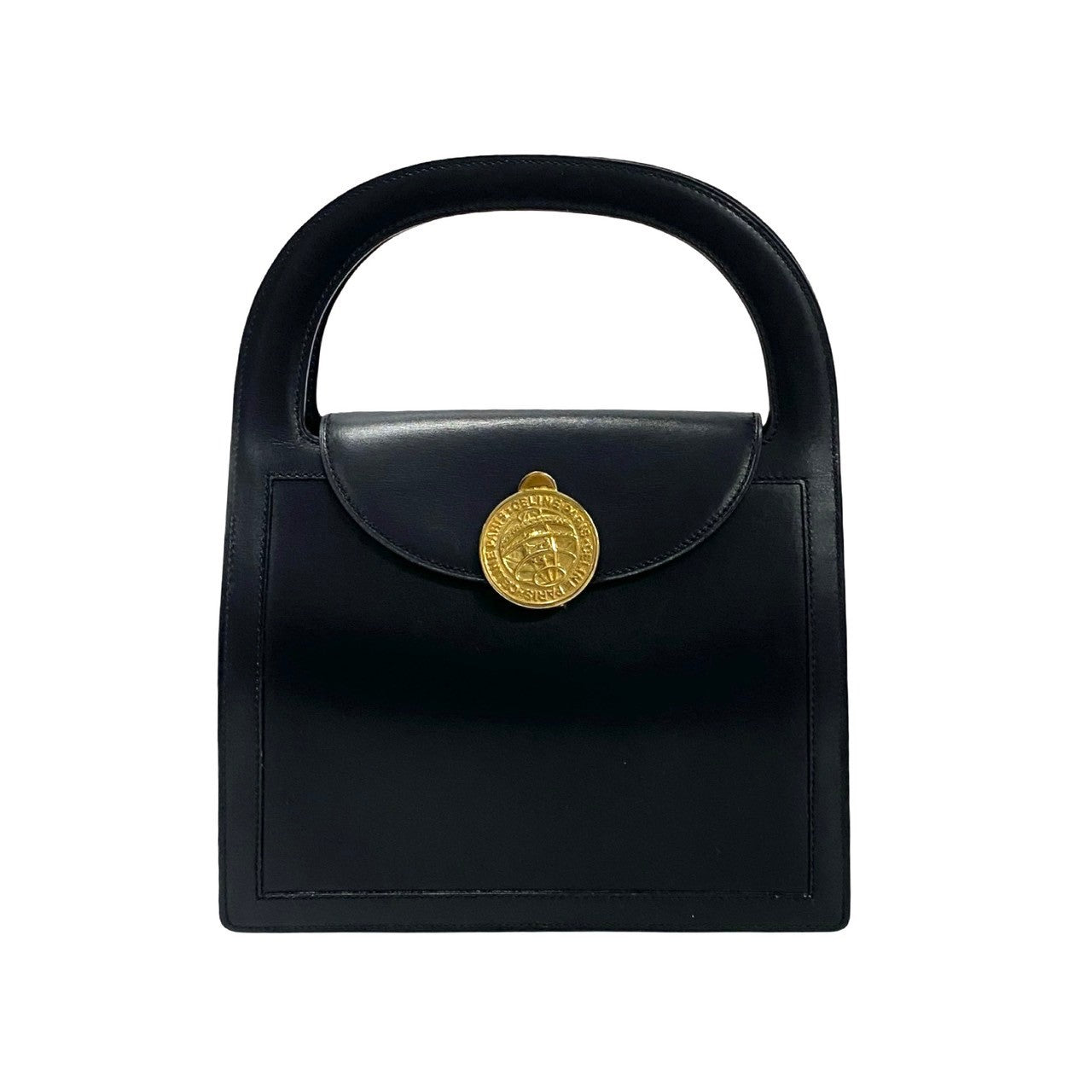 CELINE Handbag leather black Globe logo Metal Women Used Authentic