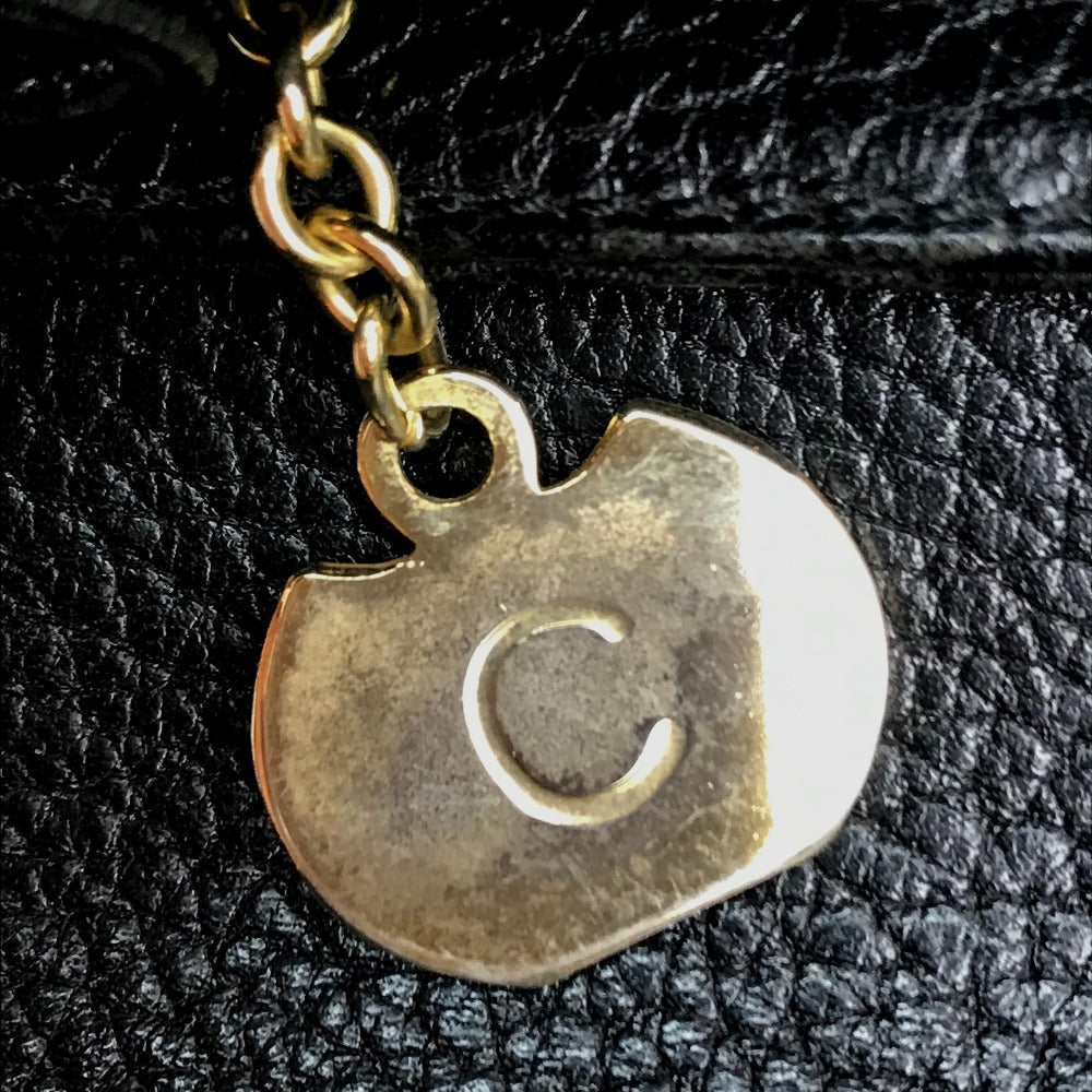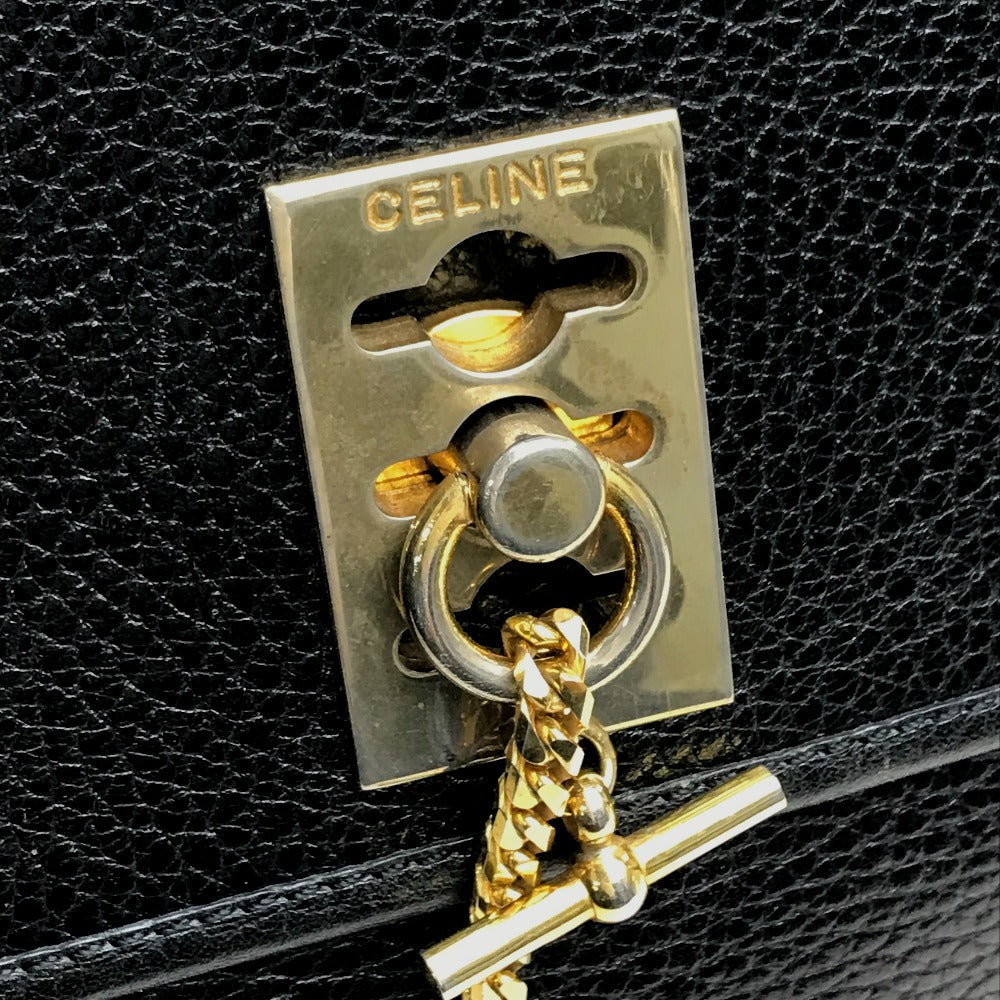 CELINE Handbag leather Black x Gold Metal vintage Chain lock Women Used Authentic