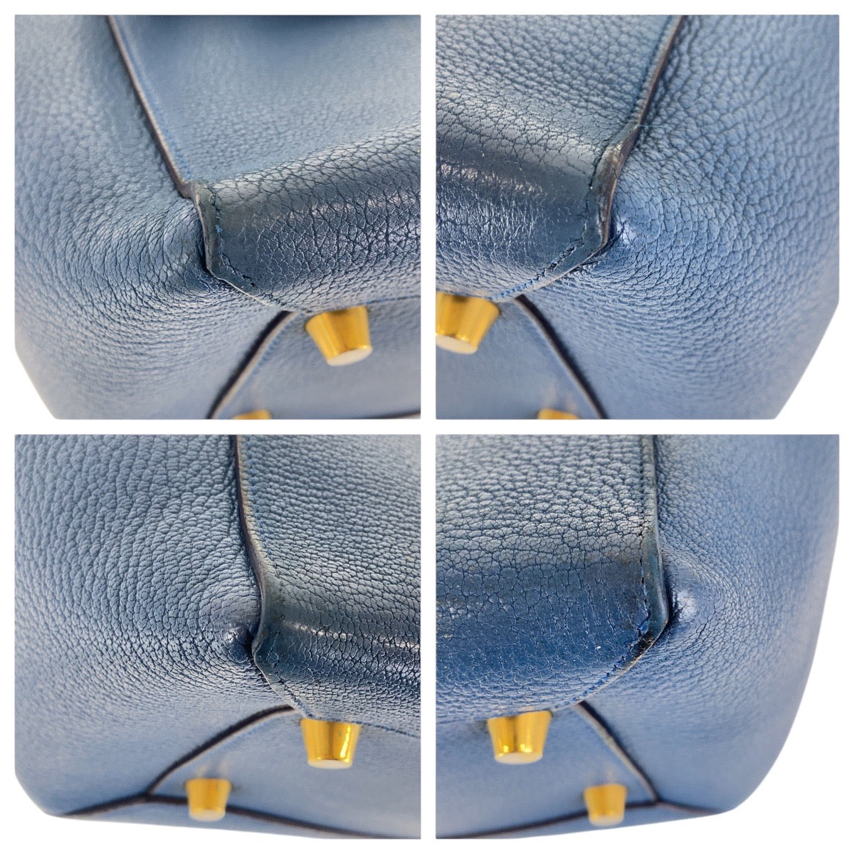 CELINE Handbag leather Blur Navy Gold Metal Handbag Shoulder Bag 2WAY Belt bag Women Used Authentic