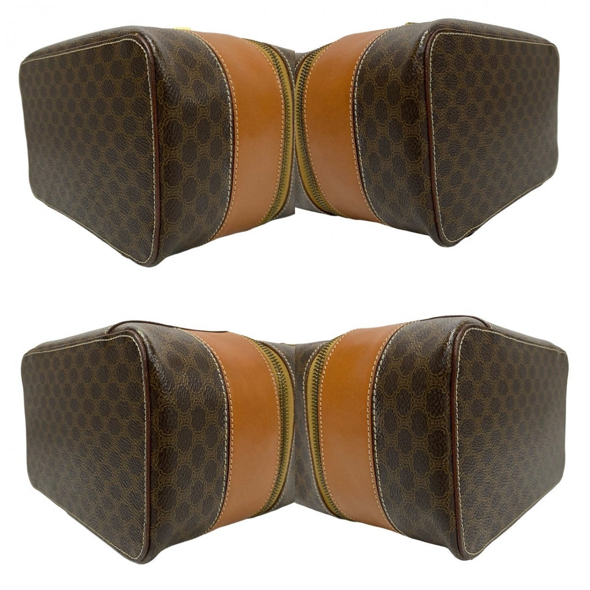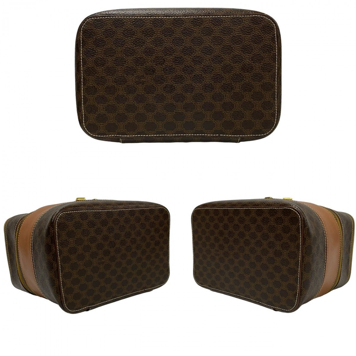 CELINE Handbag Leather, PVC Brown Macadam Blason Triomphe Pattern Women Used Authentic