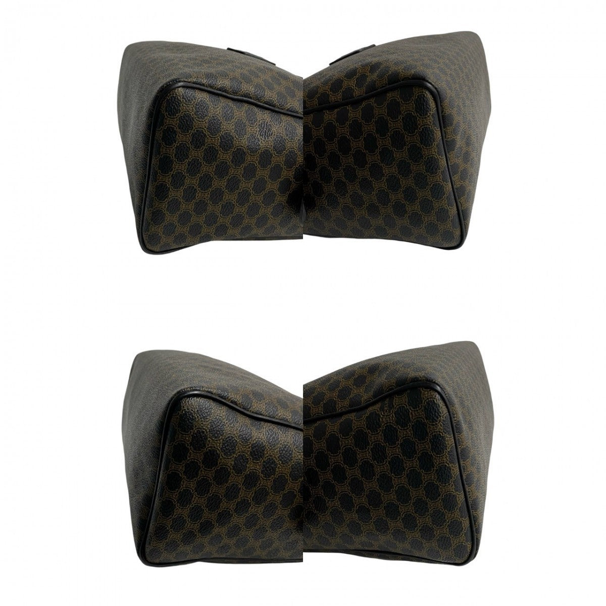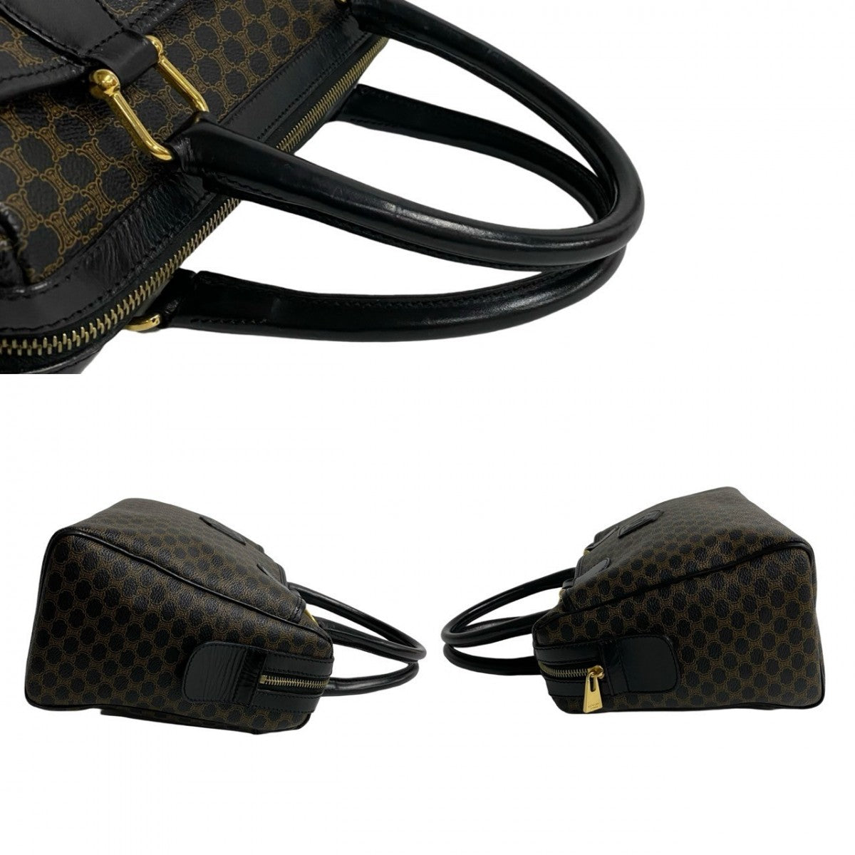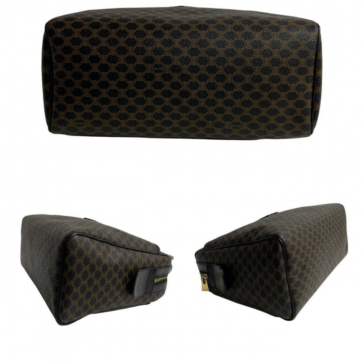 CELINE Handbag Leather, PVC Brown Macadam Blason Triomphe Pattern Women Used Authentic