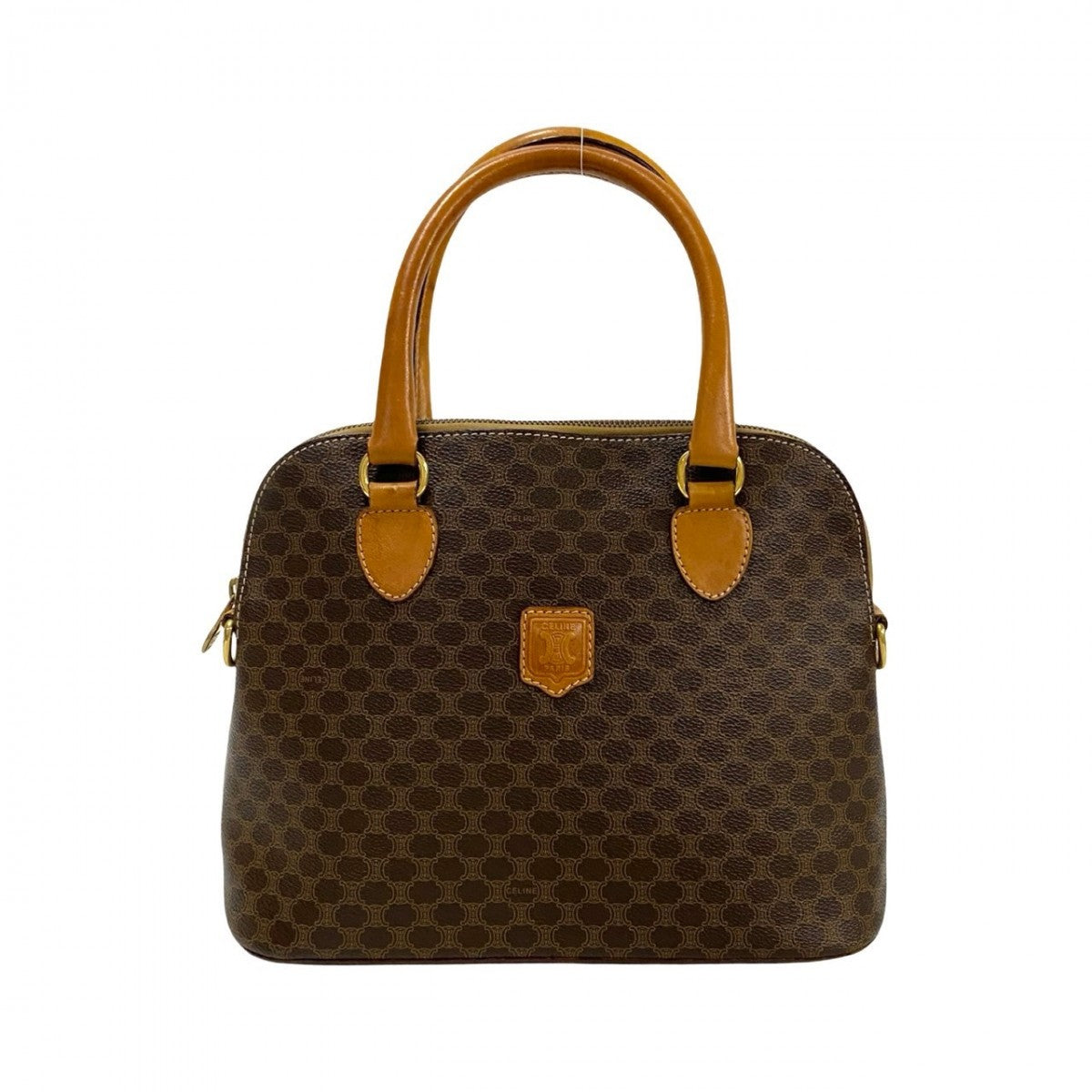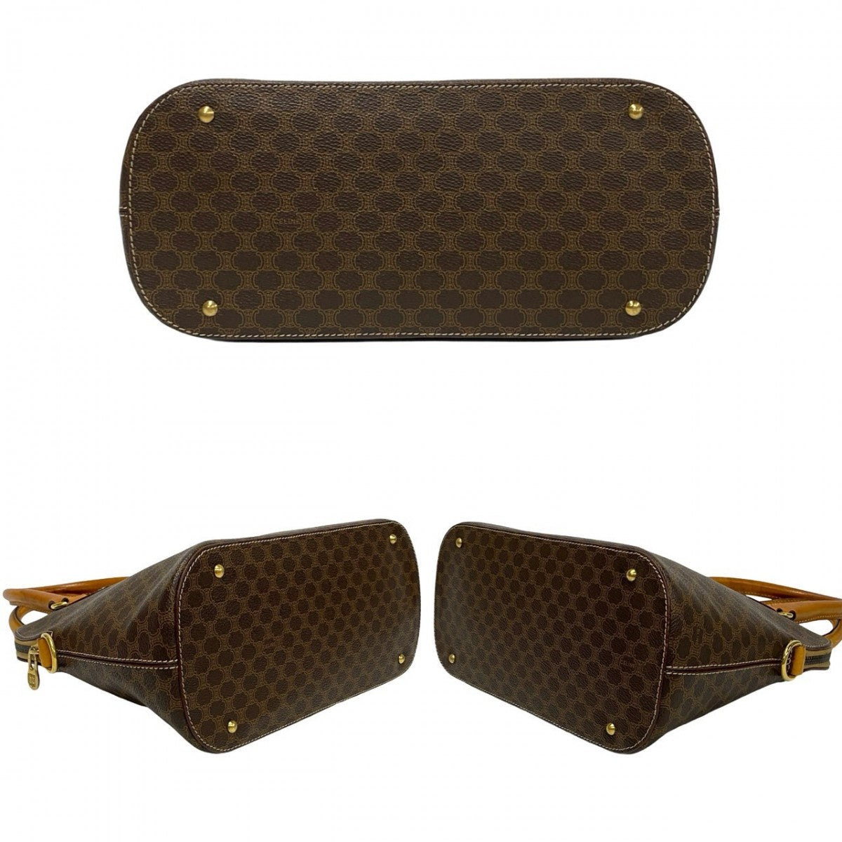 CELINE Handbag Leather, PVC Brown Macadam Blason Triomphe Pattern Women Used Authentic