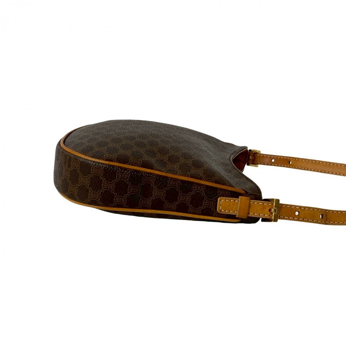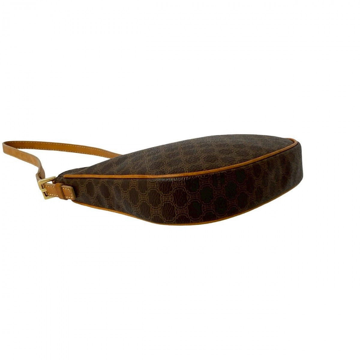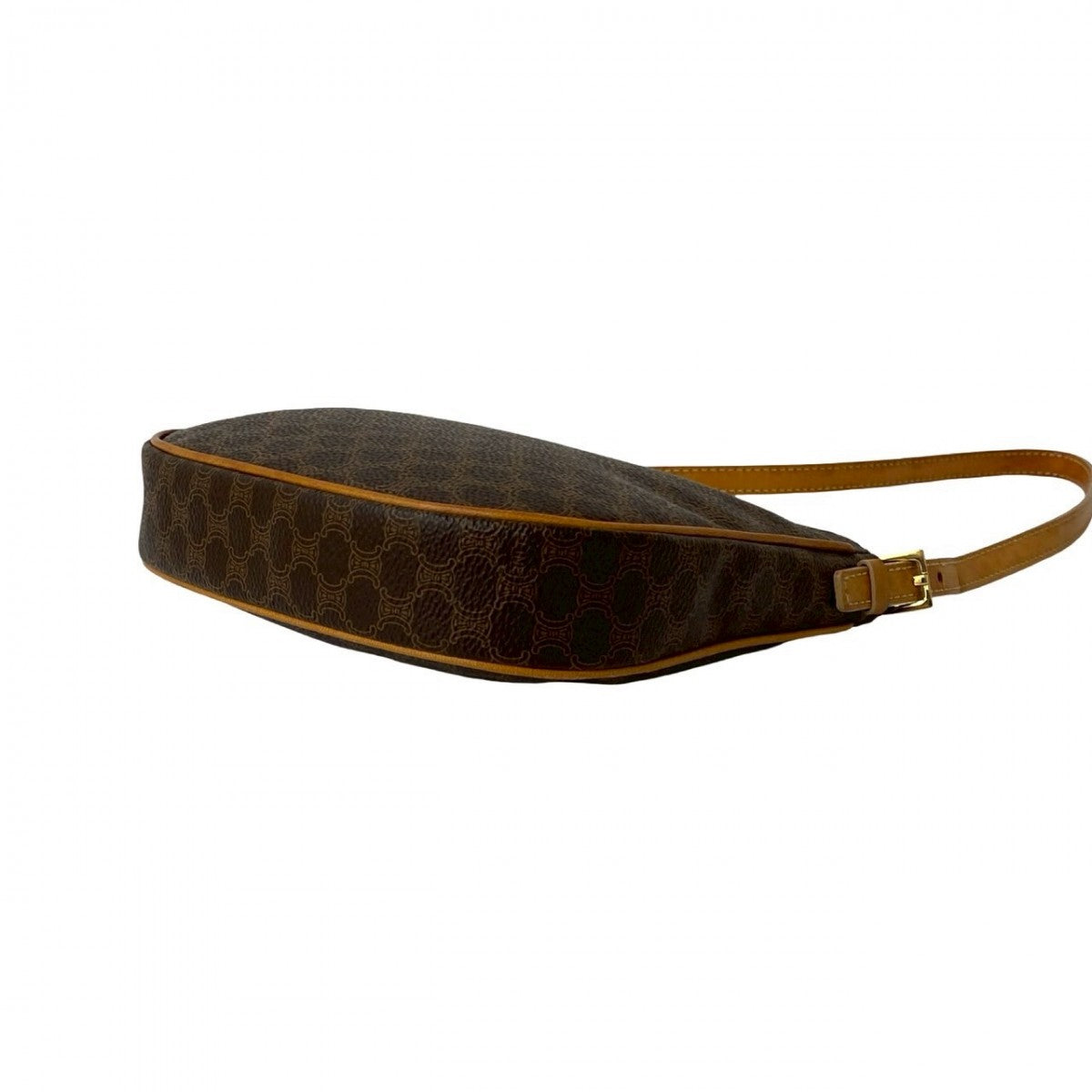 CELINE Handbag Leather, PVC Brown Macadam Blason Triomphe Pattern Women Used Authentic