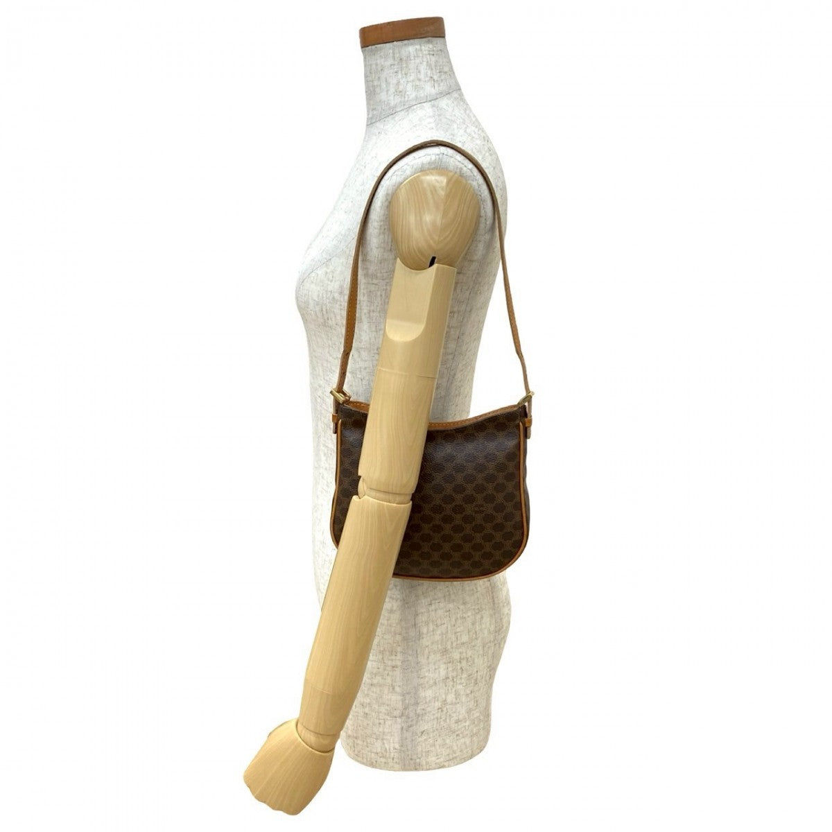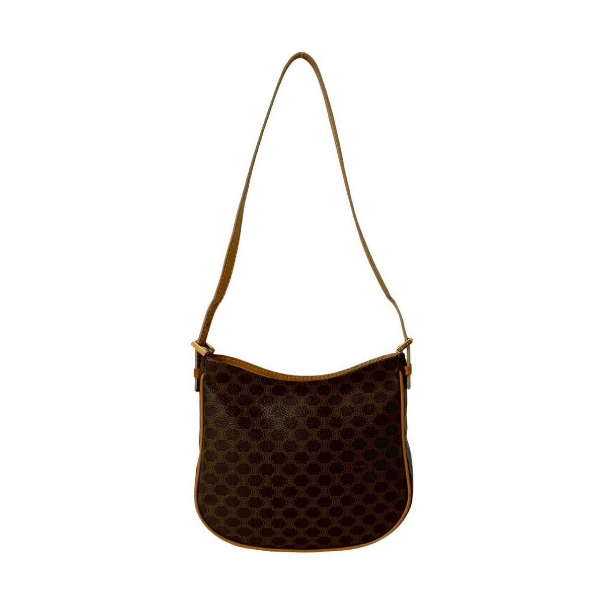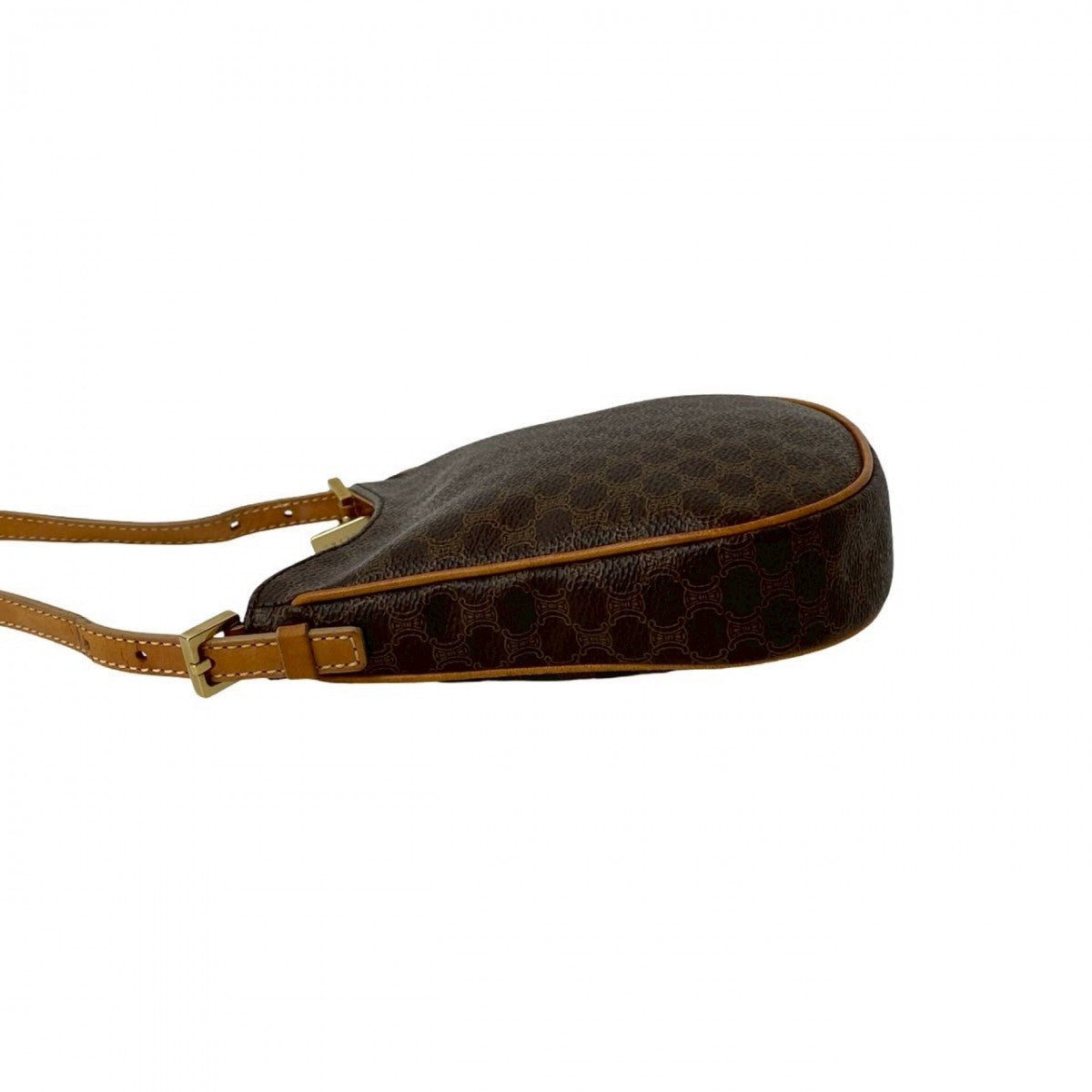 CELINE Handbag Leather, PVC Brown Macadam Blason Triomphe Pattern Women Used Authentic