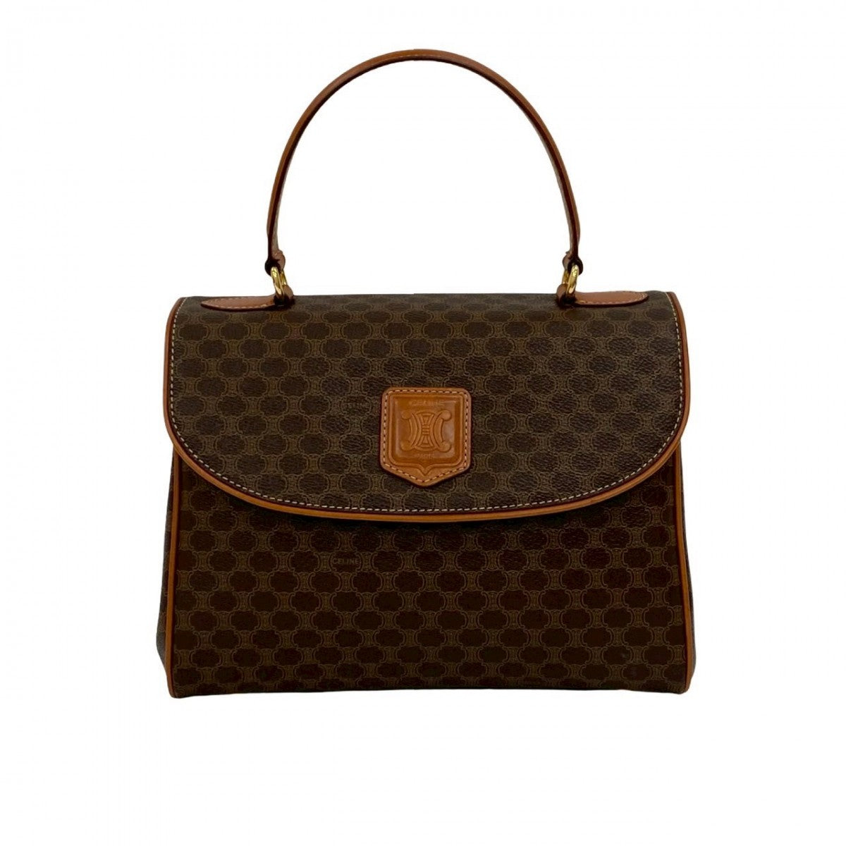 CELINE Handbag Leather, PVC Brown Macadam Blazon Pattern Triomphe logo Women Used Authentic