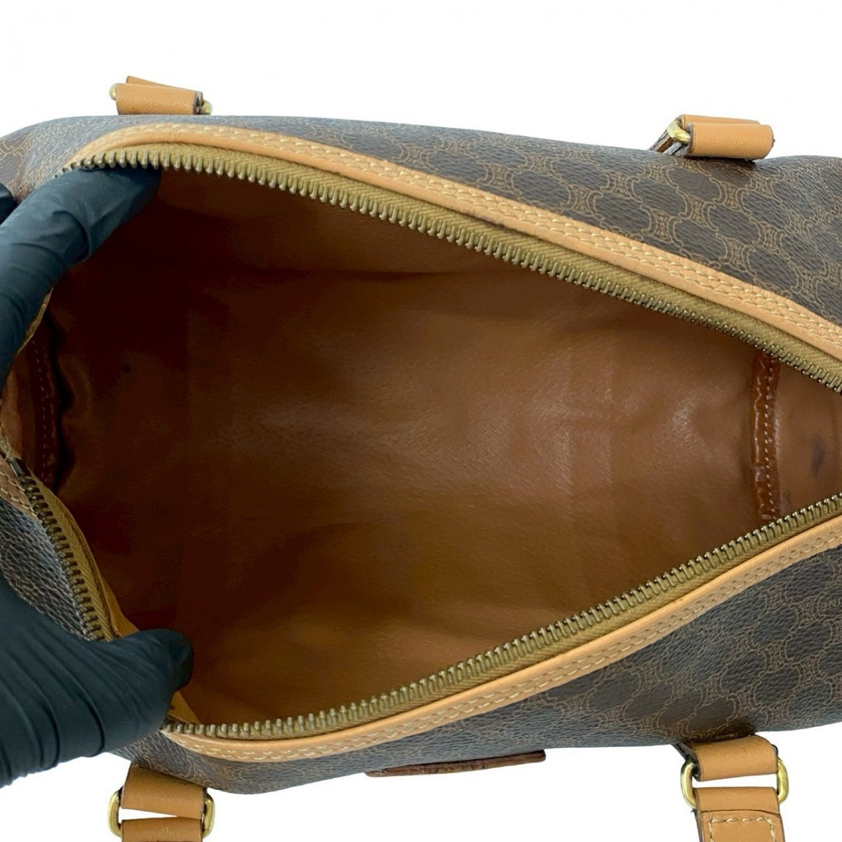 CELINE Handbag Leather, PVC Brown Macadam Blazon Pattern Triomphe logo Women Used Authentic