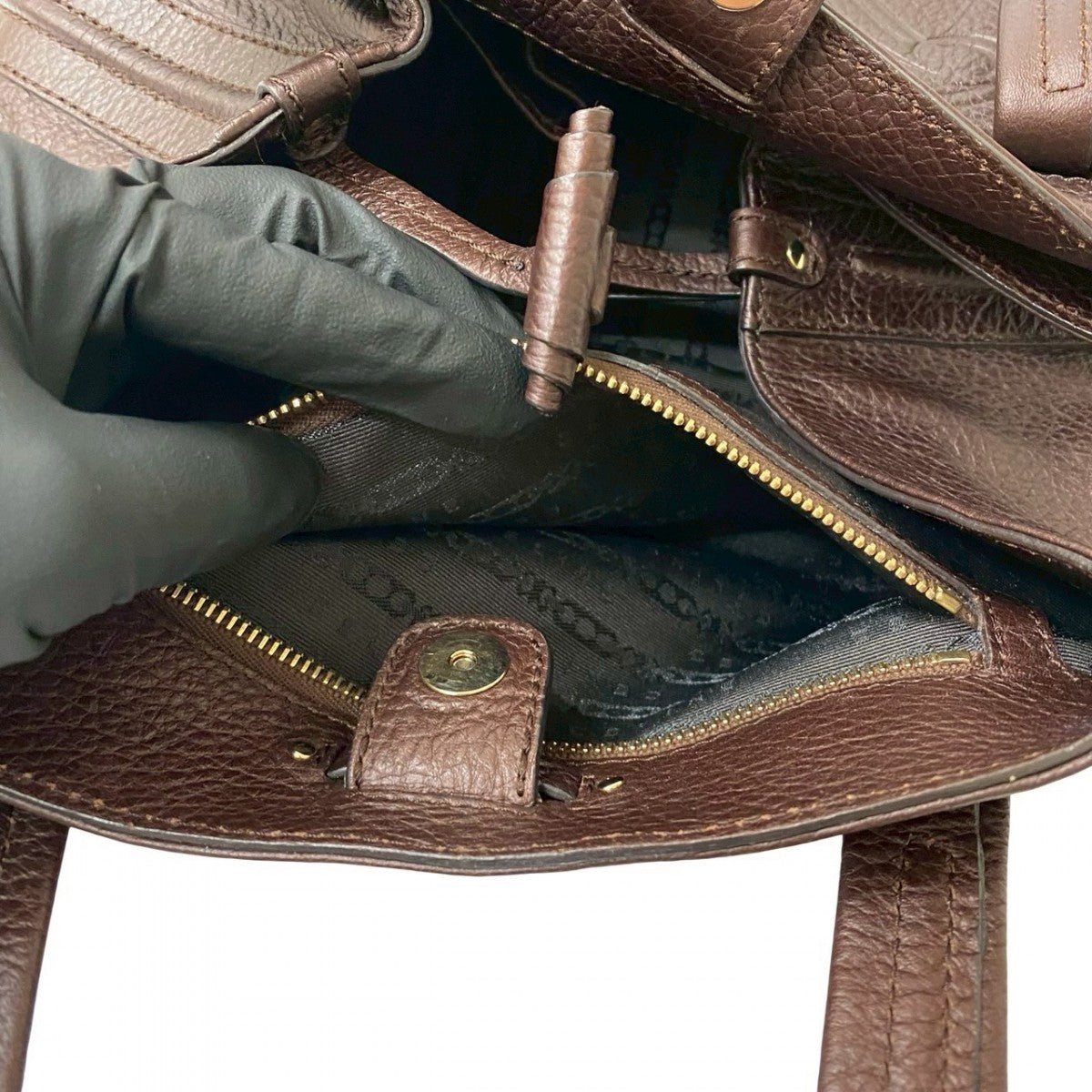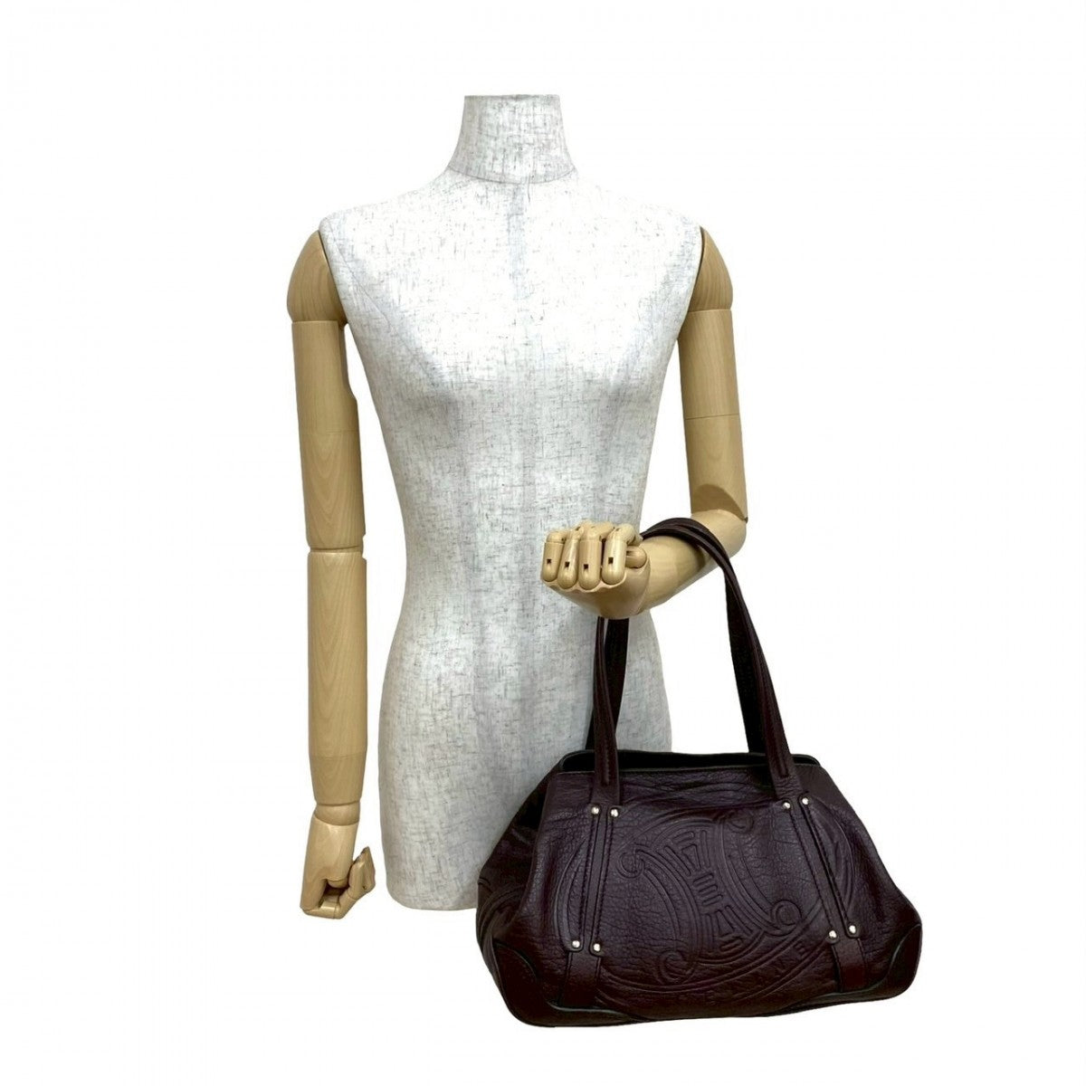 CELINE Handbag leather Brown Triomphe logo embossed Women Used Authentic