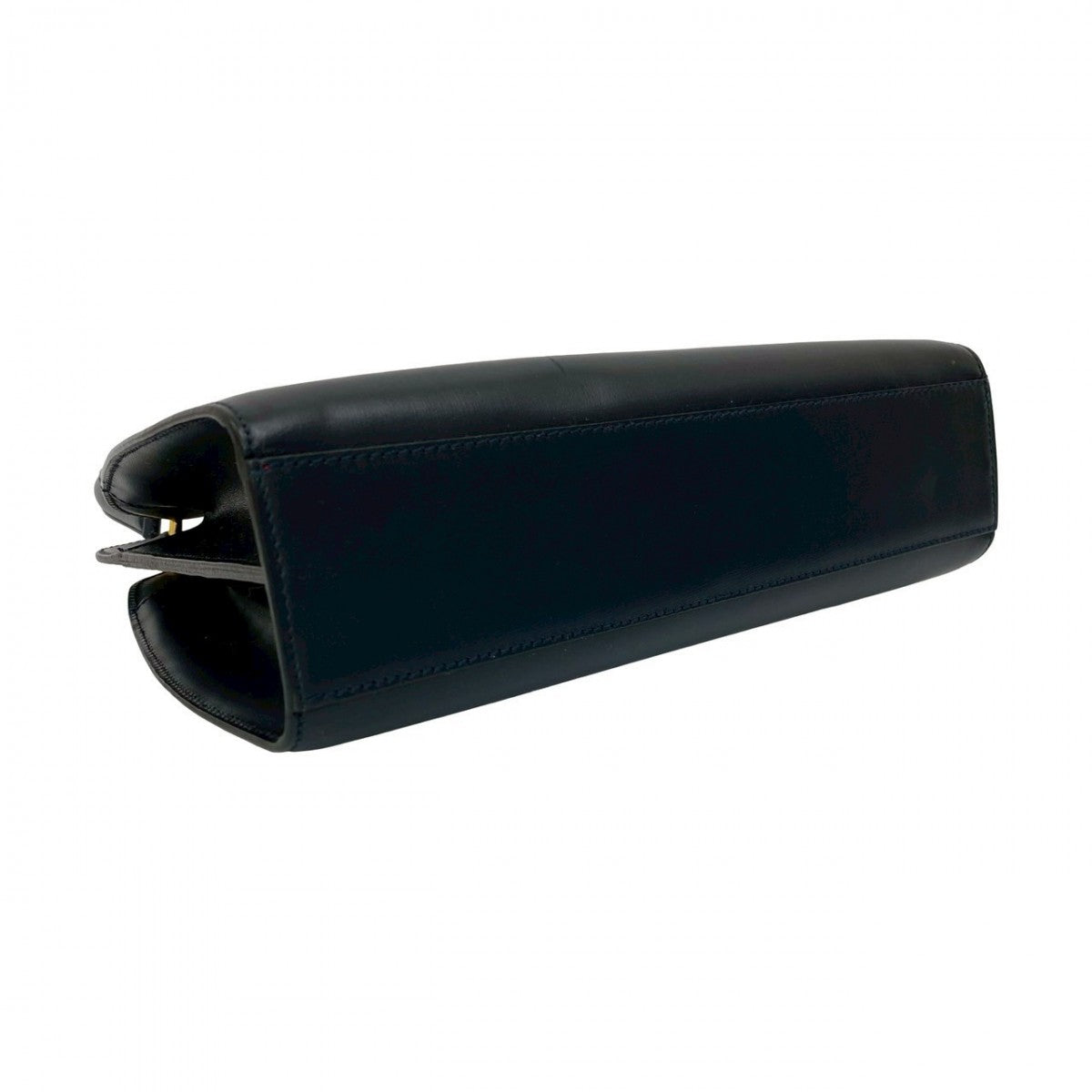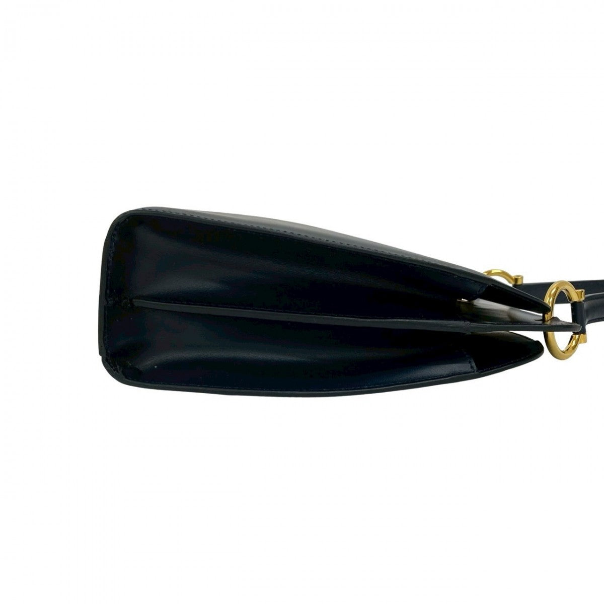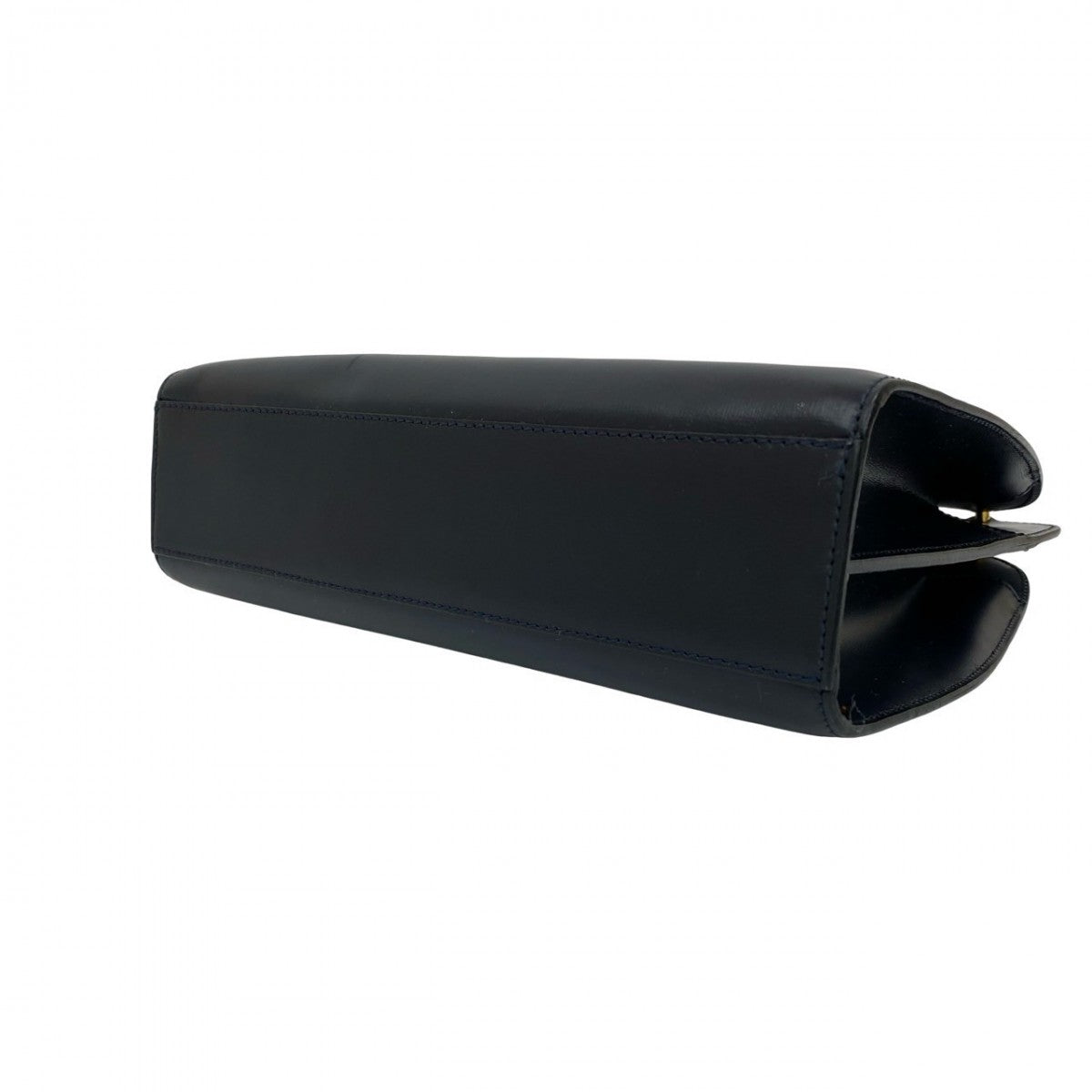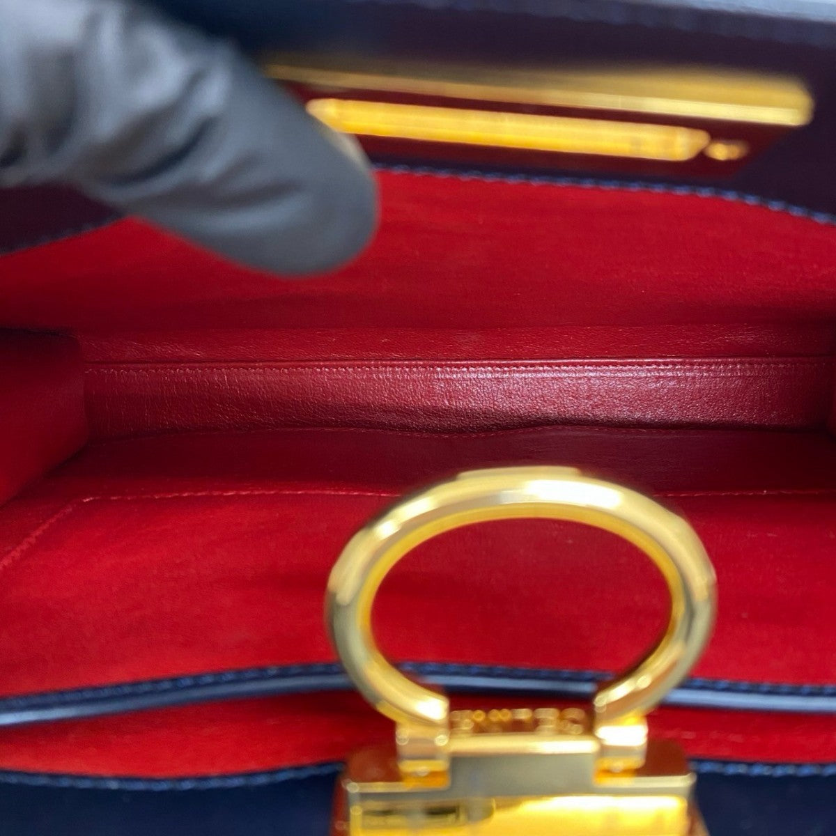 CELINE Handbag leather Navy Double Face Gancini Metal Women Used Authentic