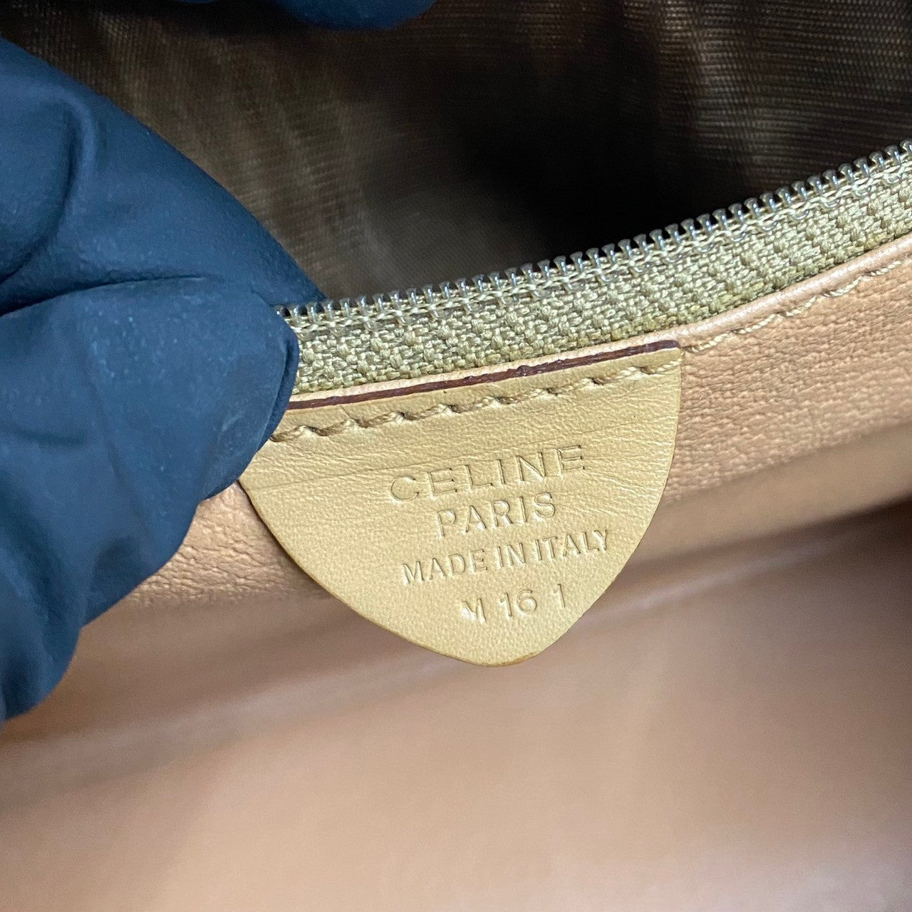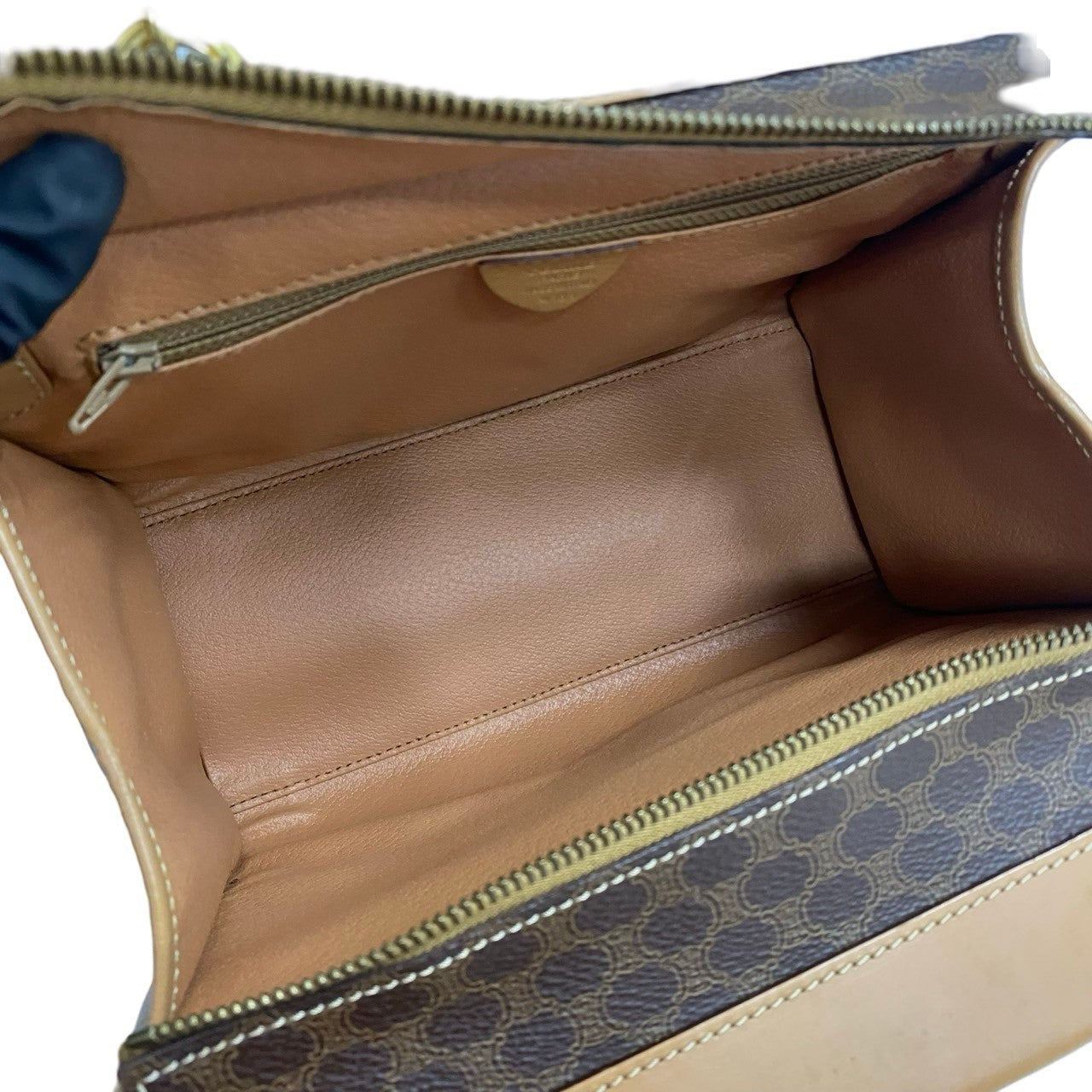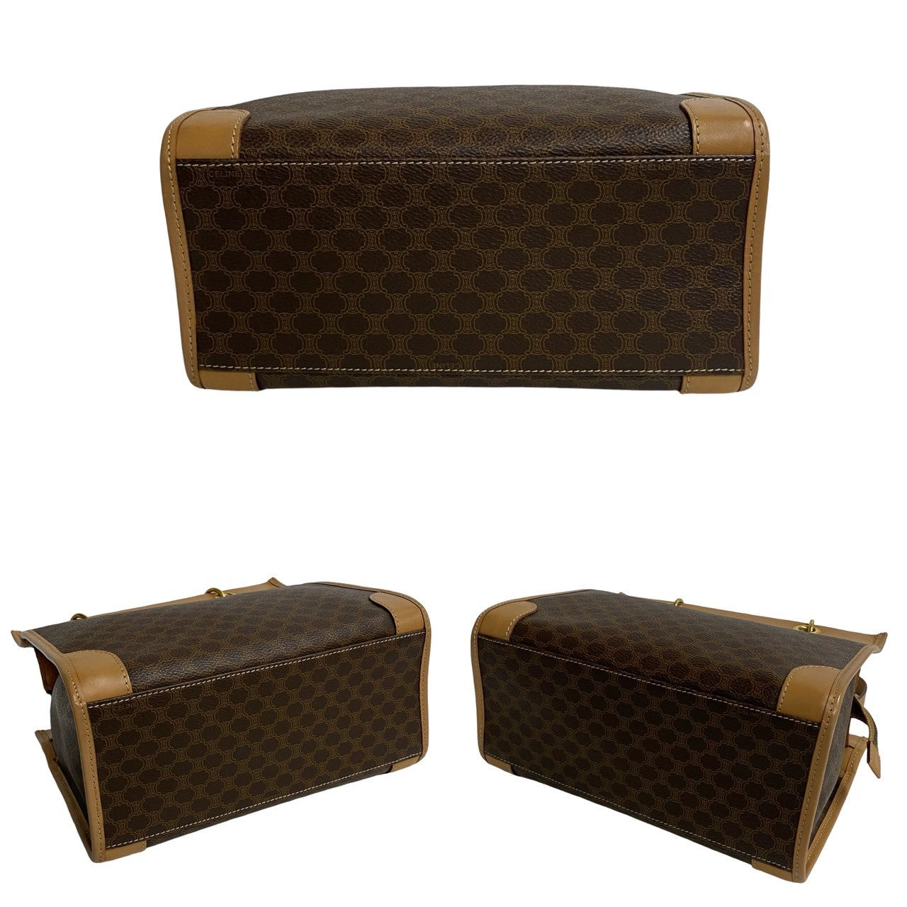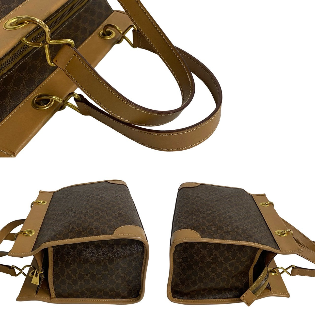 CELINE Handbag Leather, PVC Brown Macadam Blason Pattern Women Used Authentic