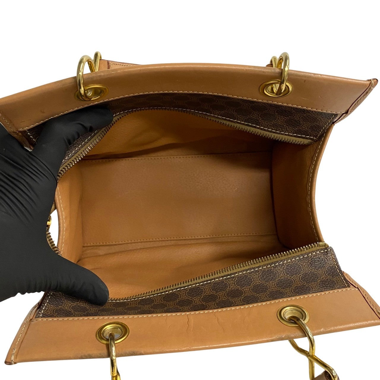 CELINE Handbag Leather, PVC Brown Macadam Blason Triomphe Women(Unisex) Used Authentic