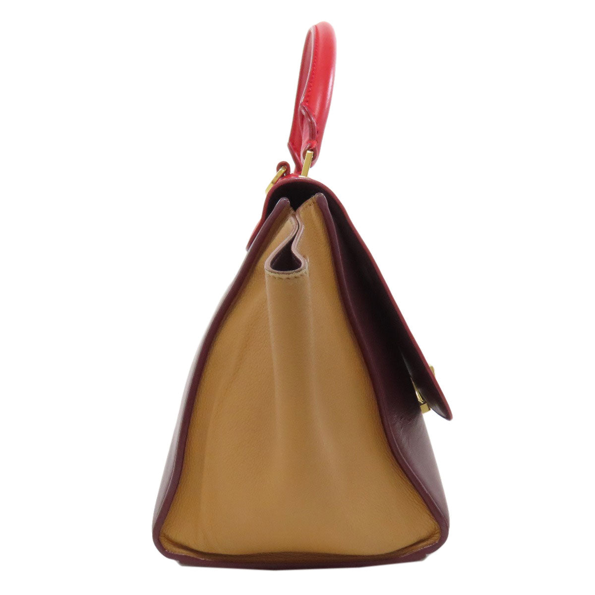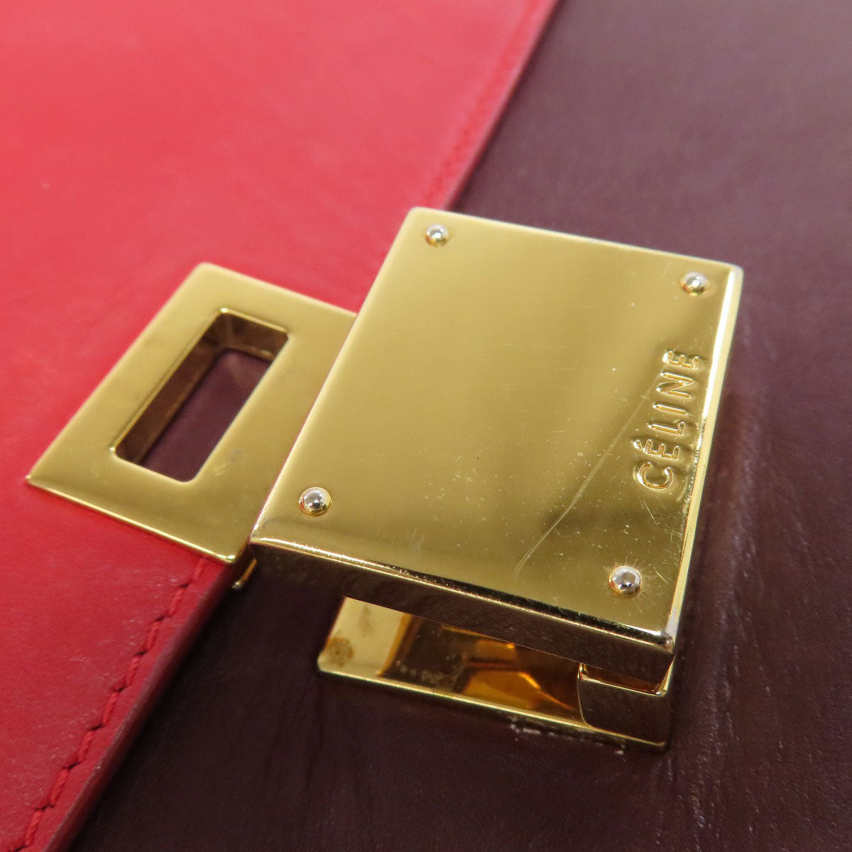 CELINE Handbag leather Red Trapeze 2WAY Women Used Authentic